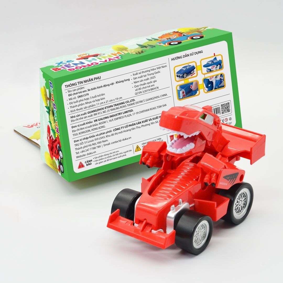 Mua tại TiktokĐồ chơi Xe biến hình động vật được sản xuất bằng chất liệu nhựa ABS và hợp kim độ bền cao, chịu được va đập. Với thiết kế theo mô hình chiếc xe ô tô và khi bấm nút xe sẽ bung ra và biến hóa thành các con vật ngộ nghĩnh và đáng yêu. Xe bánh đà tạo ma sát tốt và độ văng xa , khi chơi sẽ giúp bé tăng cường sự thích thú và tập trung của bé. Món đồ chơi không chỉ đem lại hứng thú cho trẻ, giúp trẻ phát triển các giác quan mà còn để trẻ tự do khám phá và nhận biết được các con vật và về thế giới xung quanh cũng như tăng cường tính kết nối cộng đồng. Thông tin sản phẩm: