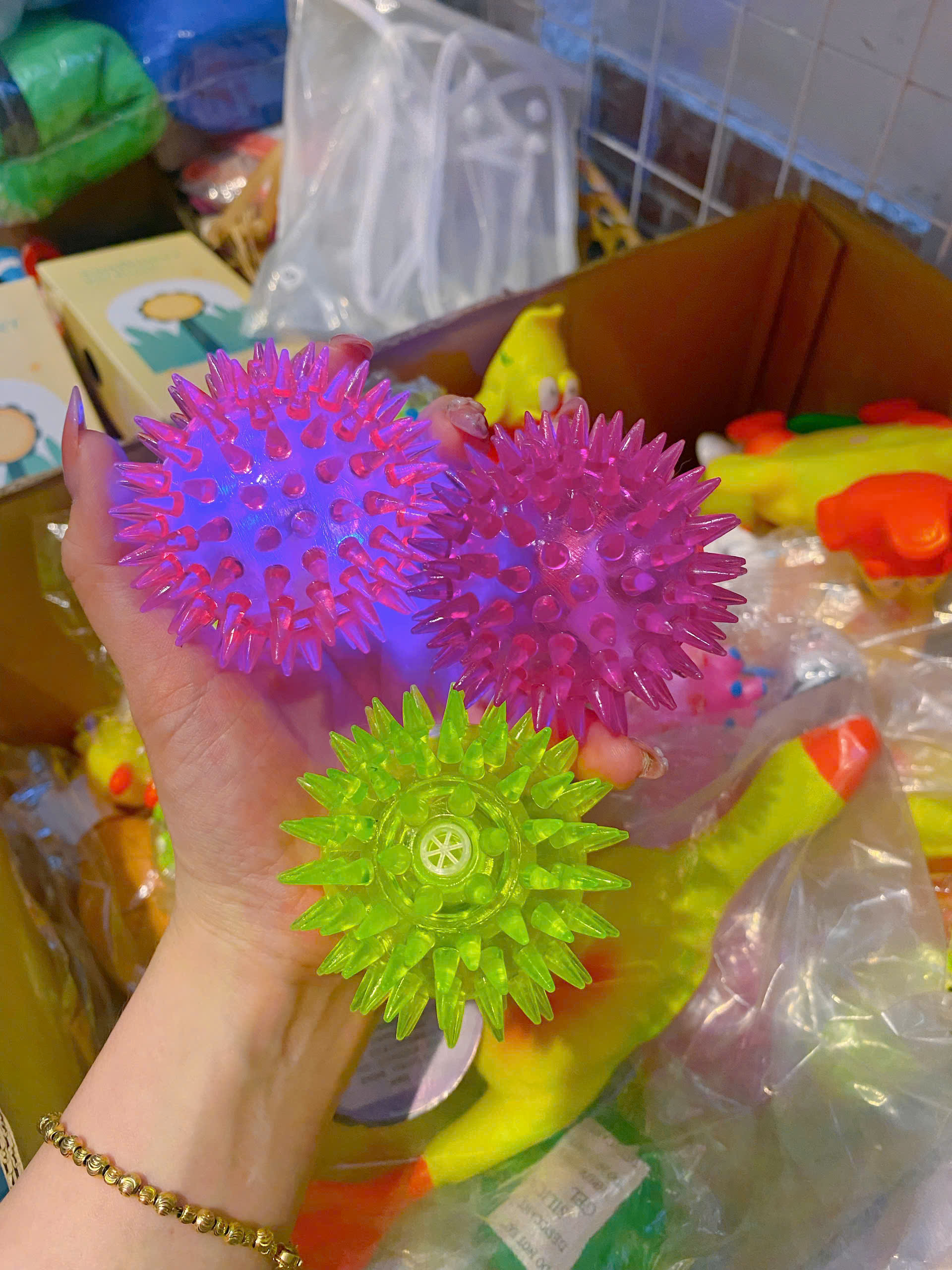 • Bóng đồ chơi cho Chó gặm Có Âm Thanh kêu có thiết kế bóng gai, và có nhiều màu sắc và ngộ nghĩnh.