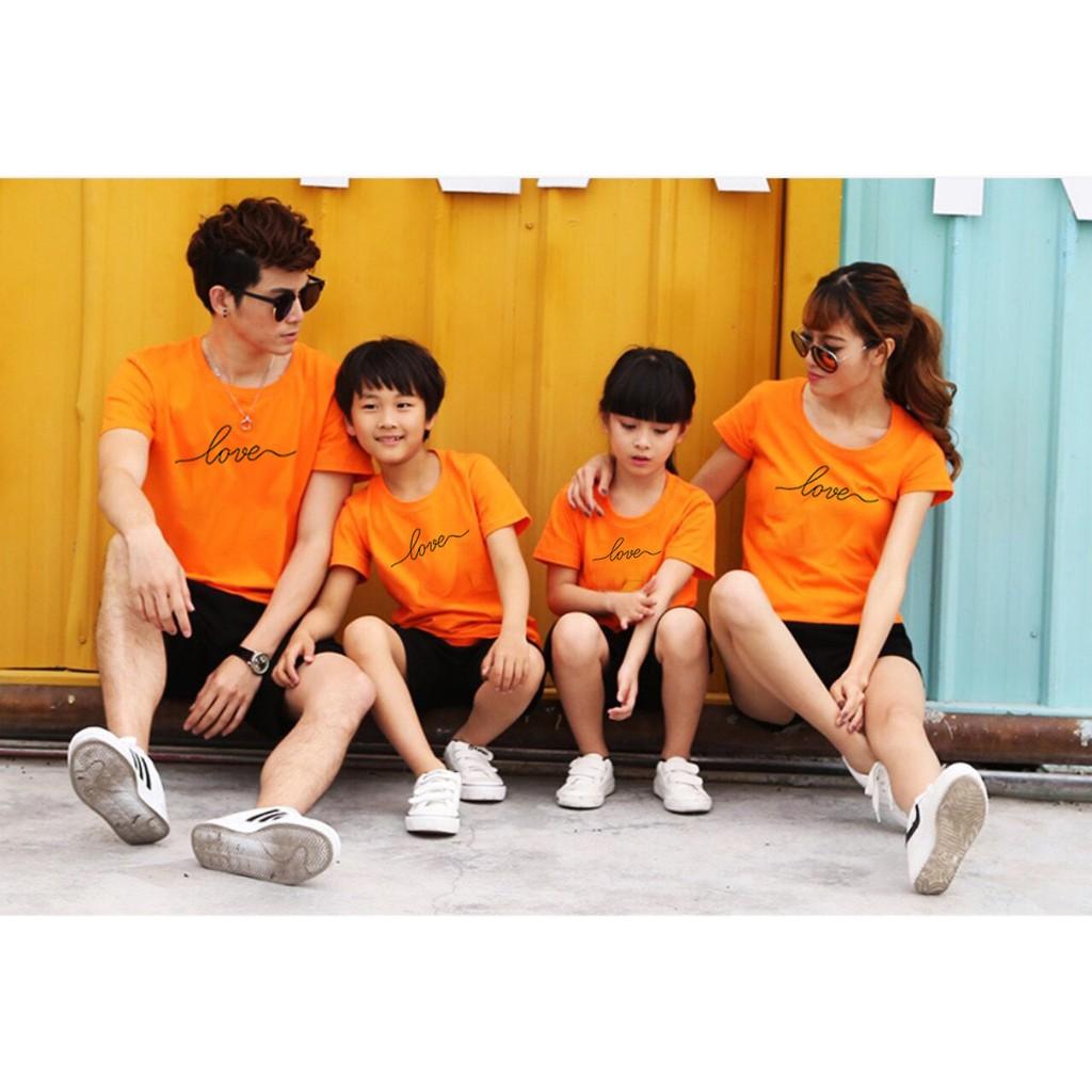Đồ gia đình quần đen áo cam in họa tiết Love nhẹ nhàng nhưng đầy lãng mạn ( giá 1 bộ gồm 1 quần + 1 áo)