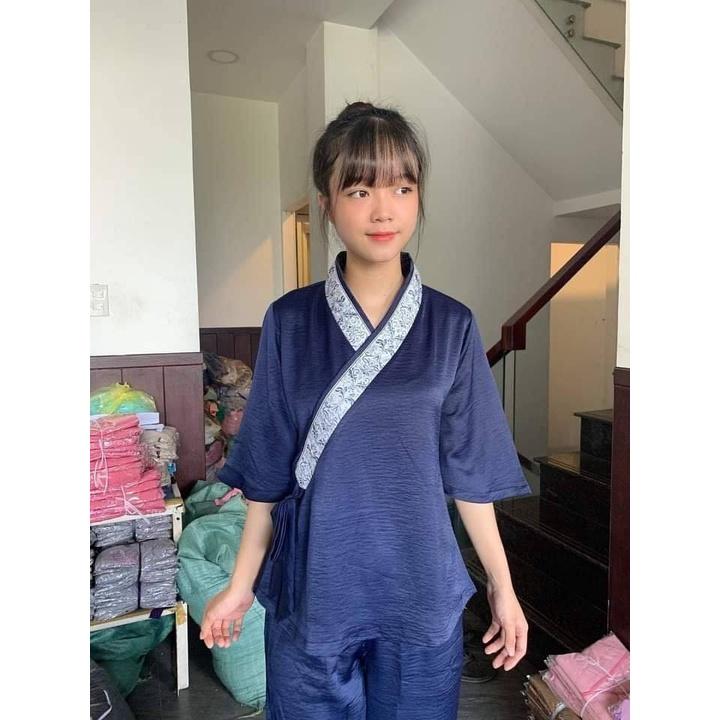 Mẫu pháp phục nữ - quần áo Phật tử đi chùa, đồ lam chất kate lụa mềm có co giãn Sen Hồng 0898553583