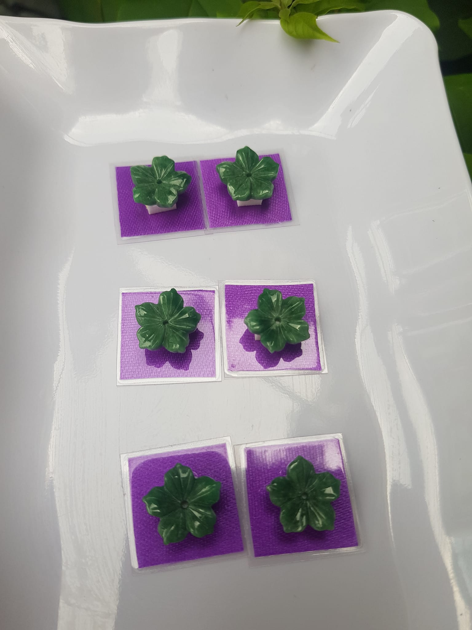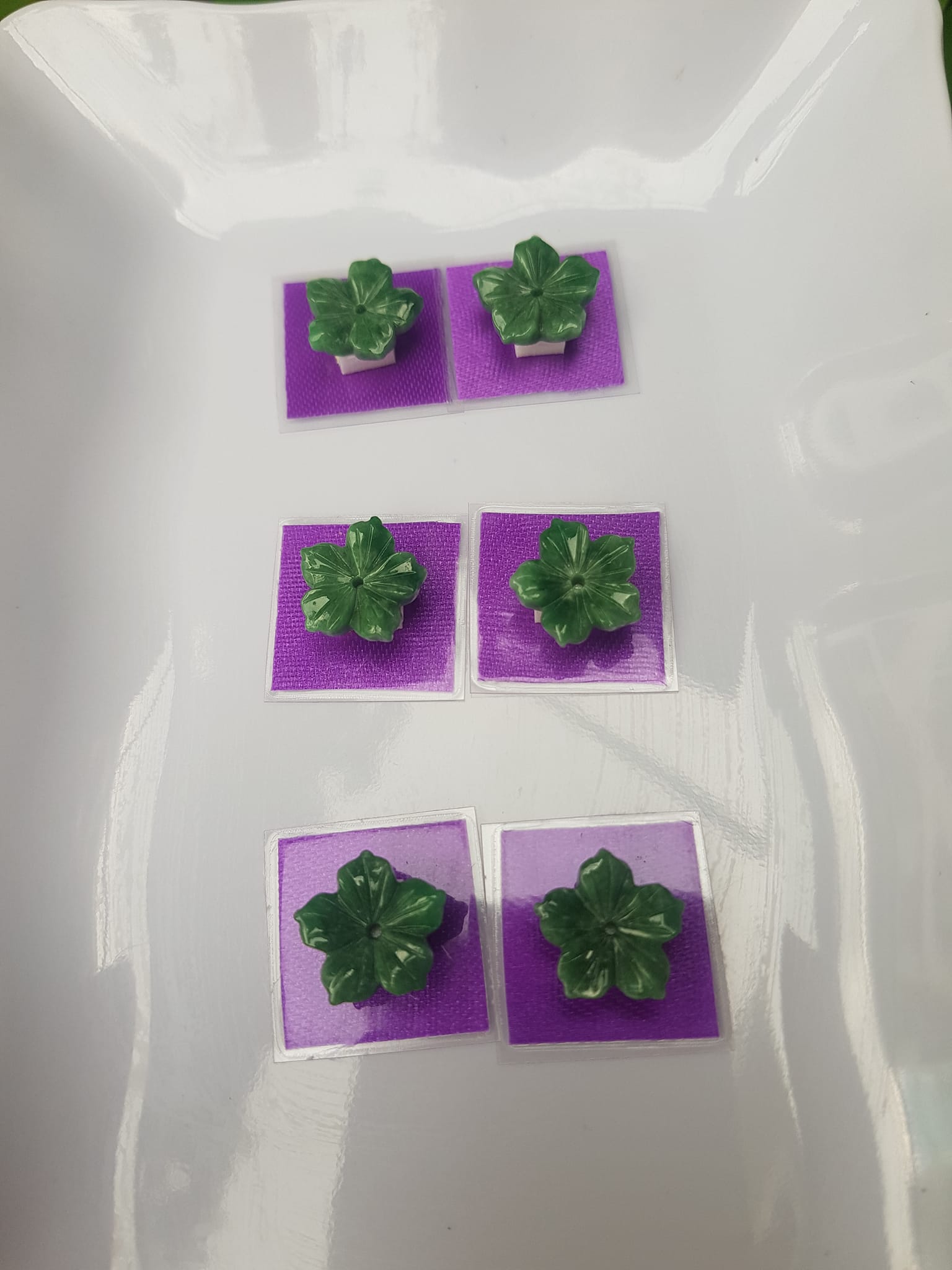 Đôi bông tai mới bông hồng nổi cao sịn đẹp xanh Ngọc tươi size đk 9,5mm x Cao 5mm Chất liệu đá ngọc cẩm thạch tự nhiên xanh ngọc tươi đều sịn bóng mượt đẹp