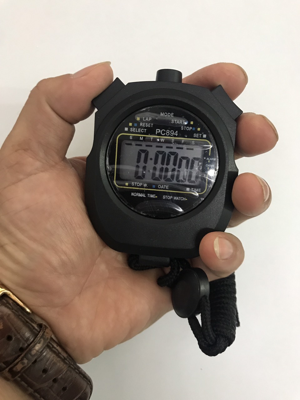 - Đồng hồ bấm giây PC 894 mẫu đồng hồ dùng cho tập luyện cũng như thi đấu các môn thể thao như: bơi lội, điền kinh, đo thời gian trong quy trình sản xuất, công việc Đồng hồ bấm giây PC894 dùng trong tập luyện, thi đấu các môn thể thao, tập bơi lặn, ghi thời gian trong công việc, qui trình sản xuất, ghi thời gian theo quy trình liên tục… Màn hình 8 số, 3 dòng: Hiện Giờ-Phút-Giây và ngàn giây Công suất đo: 9 giờ, 59 Phút, 59,000 giây ( 10 giờ) Đơn vị đo: 1/1.000 giây Chế độ ghi: thời gian Gộp, thời gian Lập, thời gian tách lẻ. Giờ và ngày tháng hiện tại. Độ chính xác: 1/100s Kích thước-trọng lượng: 80mm x 65mm x 17mm – 51g Có dây đeo cổ Đối tượng sử dụng đồng hồ bấm giây PC894: Trọng tài, Quản đốc, Giáo viên thể dục,Thanh tra, Nhân viên Y tế, Bác sỹ… Hướng dẫn sử dụng đồng hồ bấm giây PC894