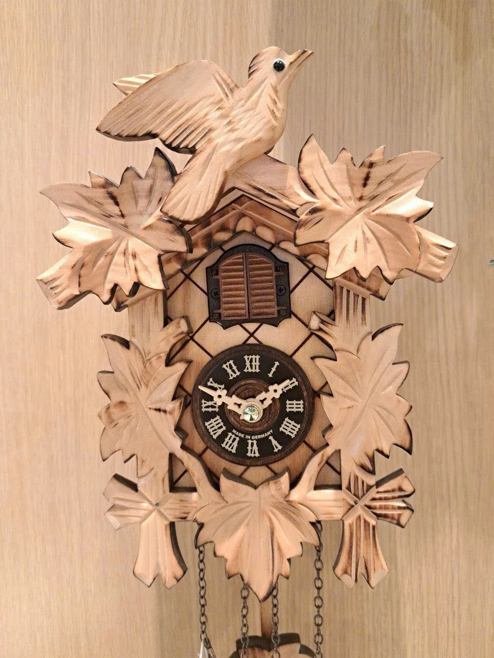 Mua tại TiktokĐồng hồ Cuc koo nổi tiếng thế giới được chế tác thủ công tinh xảo hoàn toàn bằng tay và gỗ tự nhiên tại vùng Rừng Đen (Black Forest) nước Đức. Chạy pin, máy Đức siêu bền và chuẩn xác Chim cu gáy kêu mỗi giờ, điểm số tiếng Đồng hồ chim cúc cu bằng gỗ thật, mái lợp ngói bằng gỗ thật, vỏ gỗ rắn chắc Bộ chuyển động thạch anh hoạt động bằng pin chính xác thứ hai - không cần cuộn dây. Tự động tắt tiếng vào ban đêm thông qua cảm biến ánh sáng Kích thước: 26 x 28cm. Kích thước này chỉ đề cập đến thân đồng hồ, ko kể dây (để dây kích thước là 32x28cm)