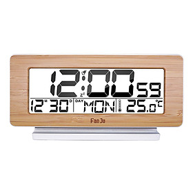 ✨Đồng hồ kỹ thuật số FanJu có chức năng hiển thị nhiệt độ, mặt gỗ thời trang, đèn nền màn hình LCD với phông chữ lớn dễ đọc