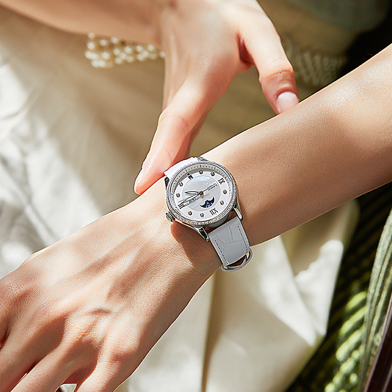 NGUỒN GỐC VÀ THÔNG SỐ SẢN PHẨM Thương Hiệu LOBINNI Mã sản phẩm L2065-5 Giới tính Nữ Loại sản phẩm Đồng hồ cơ (Automatic) Đường kính mặt 36 mm Chiều dày 9.7 mm Chất liệu
