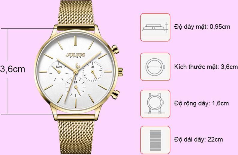 Đồng Hồ Nữ JS-005 Julius Star Hàn Quốc Dây Thép 6 Kim