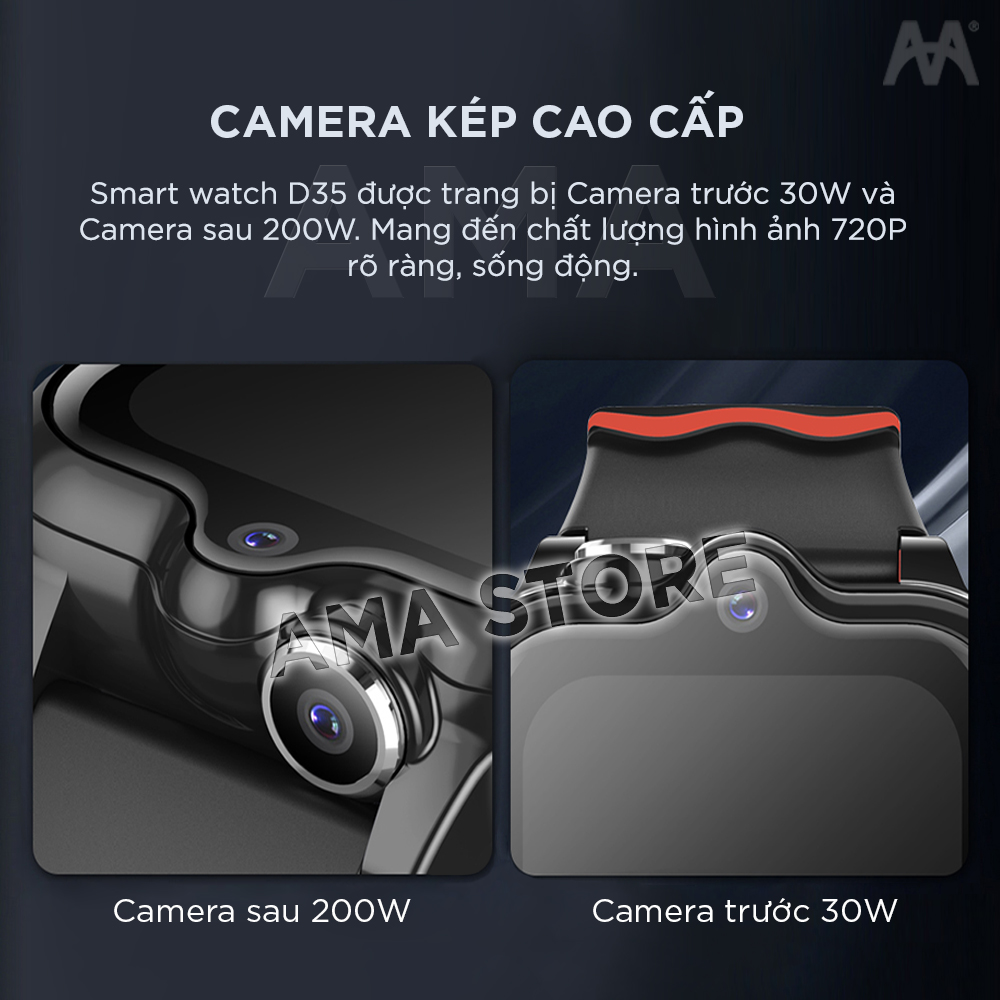 • Đồng hồ AMA Watch D35 có mặt tại Việt Nam cuối năm 2022 với rất nhiều chức năng tiện tích thiết yếu cho Lứa tuổi học sinh. Ngoài các tính năng chính như khả năng chống nước, thực hiện cuộc gọi Video HD, Định vị chính xác và Ổn định với sai số định vị chỉ 5 - 10m. D35 còn được trang bị 2 Camera chất lượng cao (Camera trước 30W, Camera sau 200W) giúp trẻ thoải mái thực hiện đam mê nhiếp ảnh.