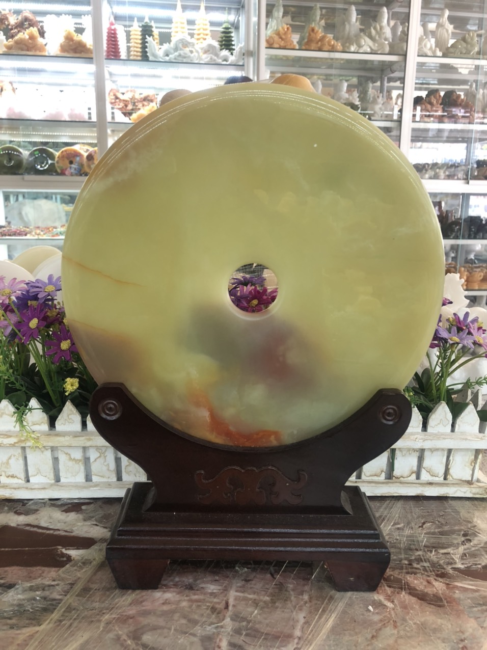 ✨Đồng tiền, đồng điếu may mắn phong thủy chiêu nạp tài lộc đá ngọc Onyx xanh nhạt - Đường kính 26 cm