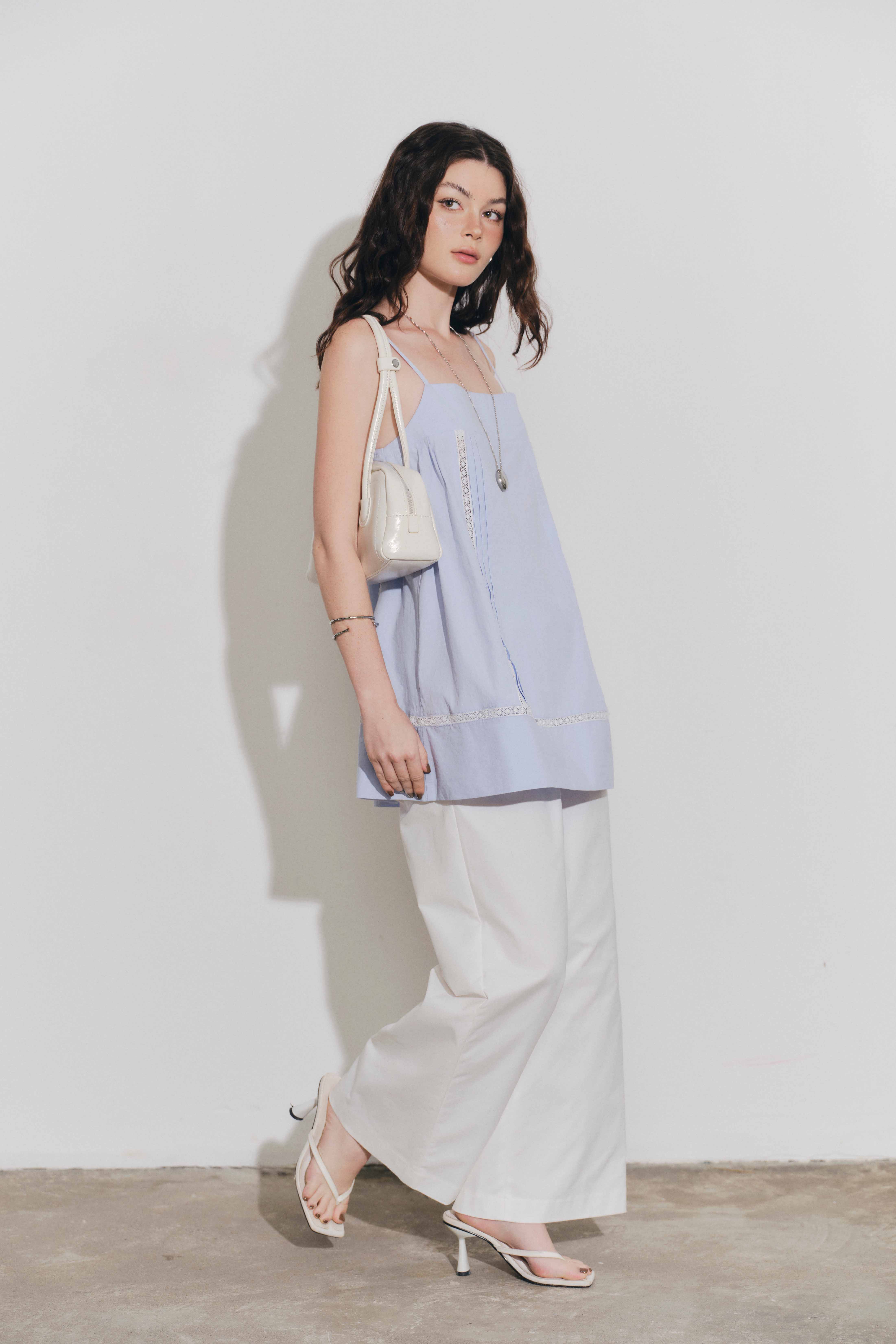 . --------------- CHI TIẾT SẢN PHẨM ✿ Sản phẩm : Áo 2 dây nữ babydoll chiết eo xòe Min Miều Est.2013 ✿ Chất liệu : Kate Hoa ✿ Màu sắc : TRẮNG ✿ Size :