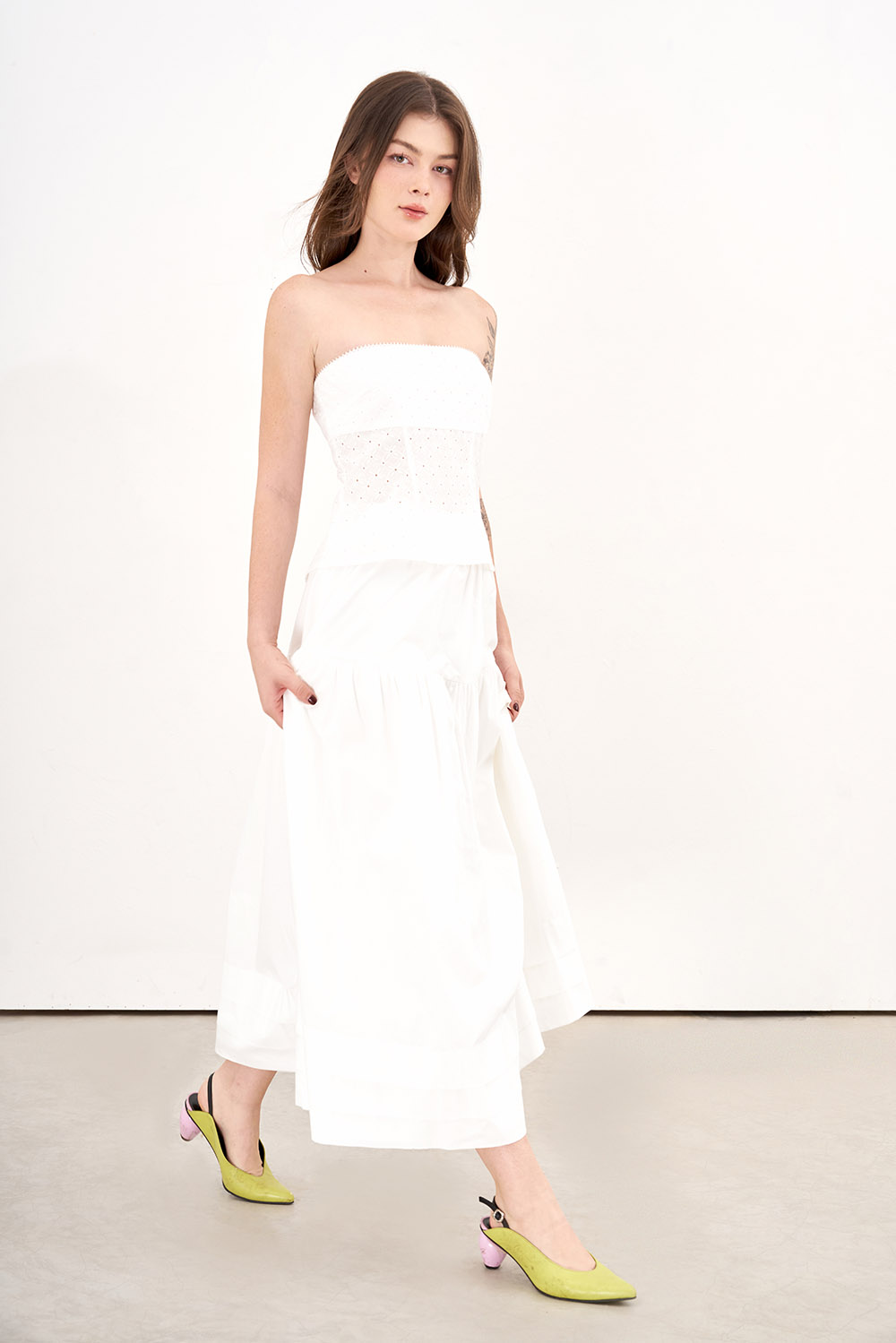 THÔNG TIN SẢN PHẨM - Màu sắc : Trắng - Chất liệu : Xô thêu - Đặc tính : Đứng form. thoáng mát - Lưu ý giặt ủi : Giặt tay/ máy/ giặt riêng - Size : S / M STT CHI TIẾT ĐO / SIZE S M 1 Dài áo 29 31 2 Ngang ngực 62 66 3 Ngang chân ngực 72 76 4