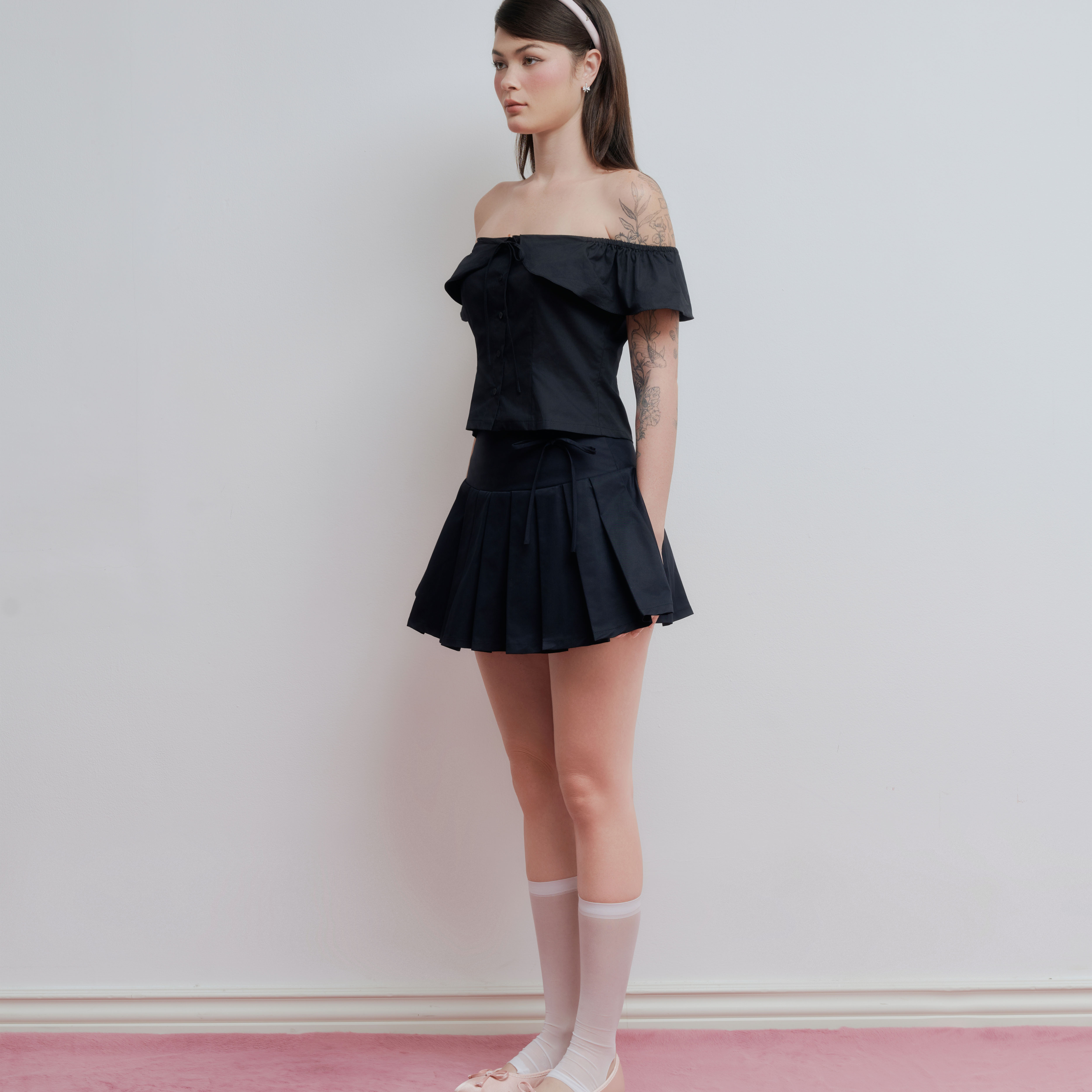 ✨DOTTIE - Chân váy ngắn phối vải xếp ly - Đen - S0265