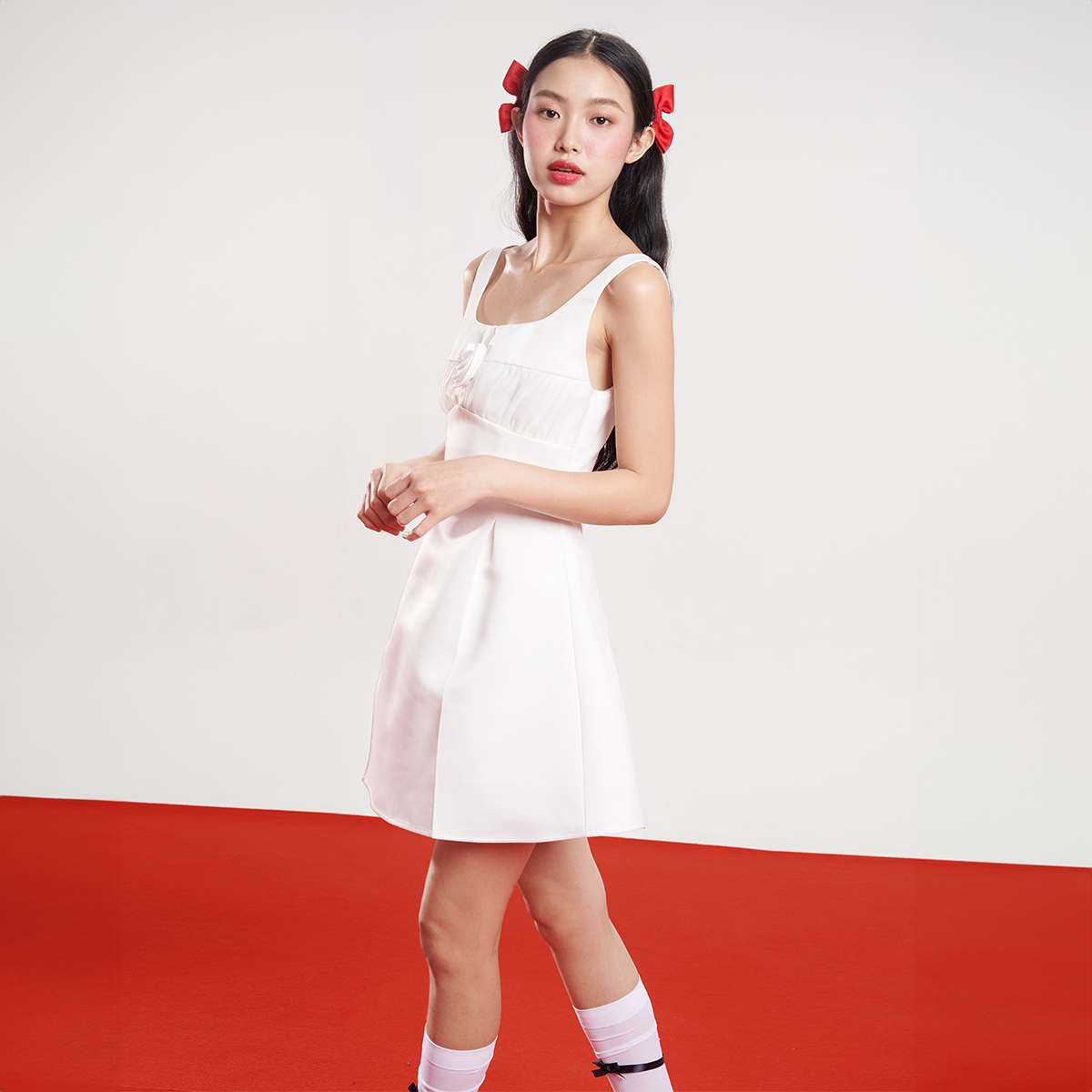 ღ THÔNG TIN SẢN PHẨM: Tên sản phẩm: Đầm đỏ phối vạt trắng Màu sắc: Đỏ Chất liệu: Gân ý Chi tiết sản phẩm: không lót, không túi. Thông số size: