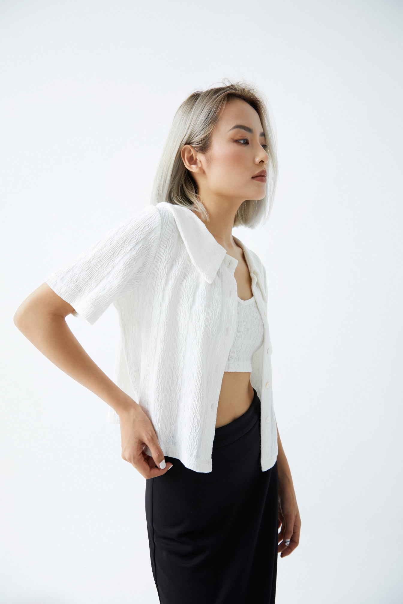 - Màu sắc : Trắng - Chất liệu : Cotton pha - Đặc tính : Nhẹ, thoáng mát, đứng phom - Lưu ý giặt ủi : Giặt riêng, giặt tay, giặt máy - Size : S / M - Thông số sản phẩm : Dài áo / Ngang ngực S: 55 / 90 M: 57 / 94 LƯU Ý: + Bảng size chart chỉ mang tính chất tham khảo, tùy thuộc vào số đo cơ thể Dottie sẵn sàng tư vấn cho bạn. + Nếu cần Dottie hỗ trợ về sản phẩm, khi mở sản phẩm bạn vui lòng quay lại video quá trình mở sản phẩm giúp Dottie nhen. + Giặt riêng với đồ tối màu + Khuyến khích giặt tay đối với những sản phẩm trắng + Hạn chế sấy ở nhiệt độ cao QUY ĐỊNH ĐỔI TRẢ • Thời gian: