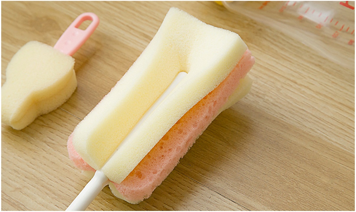 - Công dụng: Dụng cụ cọ rửa bình sữa với đầu mút cao cấp, mềm mại và an toàn không gây xước bình. Chất liệu mút mềm giúp làm sạch nhẹ nhàng các vật dụng như cốc chai, lọ, bình mà không gây trầy xướ rất tiện sử dụng cho cả gia đình. HDSD :