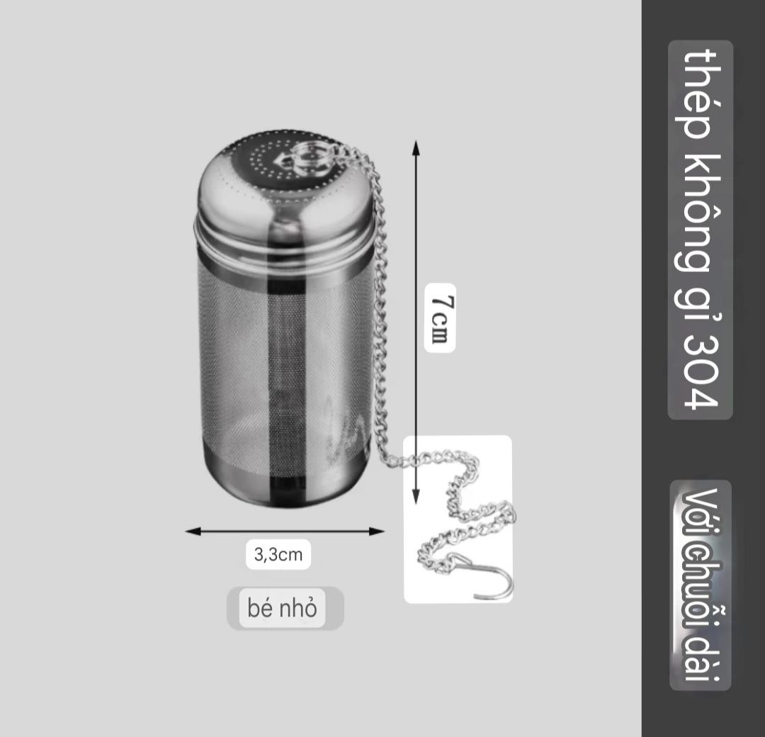 QUẢ LỌC TRÀ INOX SUS 304 & 316L – ĐA KÍCH THƯỚC, CHẤT LƯỢNG CAO CẤP Kích thước tùy chọn: Lớn: D9 x 5,3 cm Trung: D8 x 4,3 cm Nhỏ: D7 x 3,3 cm