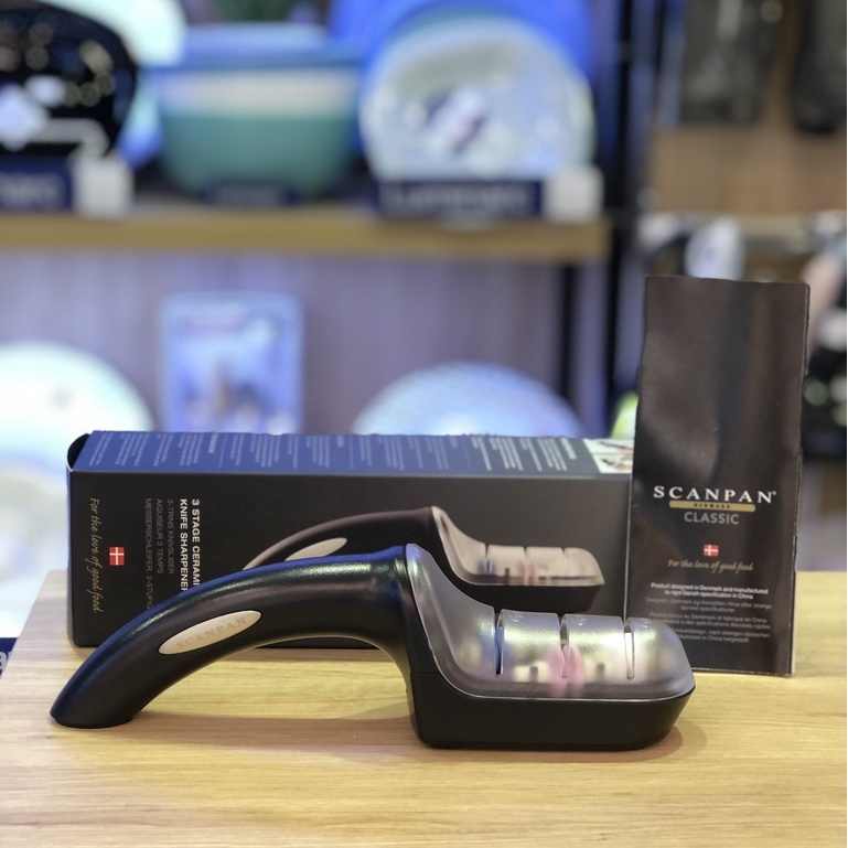 Dụng cụ mài dao Scanpan – Giữ dao luôn sắc bén chỉ với 3 bước đơn giản Dao là vật dụng không thể thiếu trong mỗi gia đình, nhưng làm thế nào để dao luôn sắc bén và bền? Với dụng cụ mài dao Scanpan, dao và kéo nhà bạn sẽ luôn sắc bén, sẵn sàng cho mọi công việc bếp núc hằng ngày.