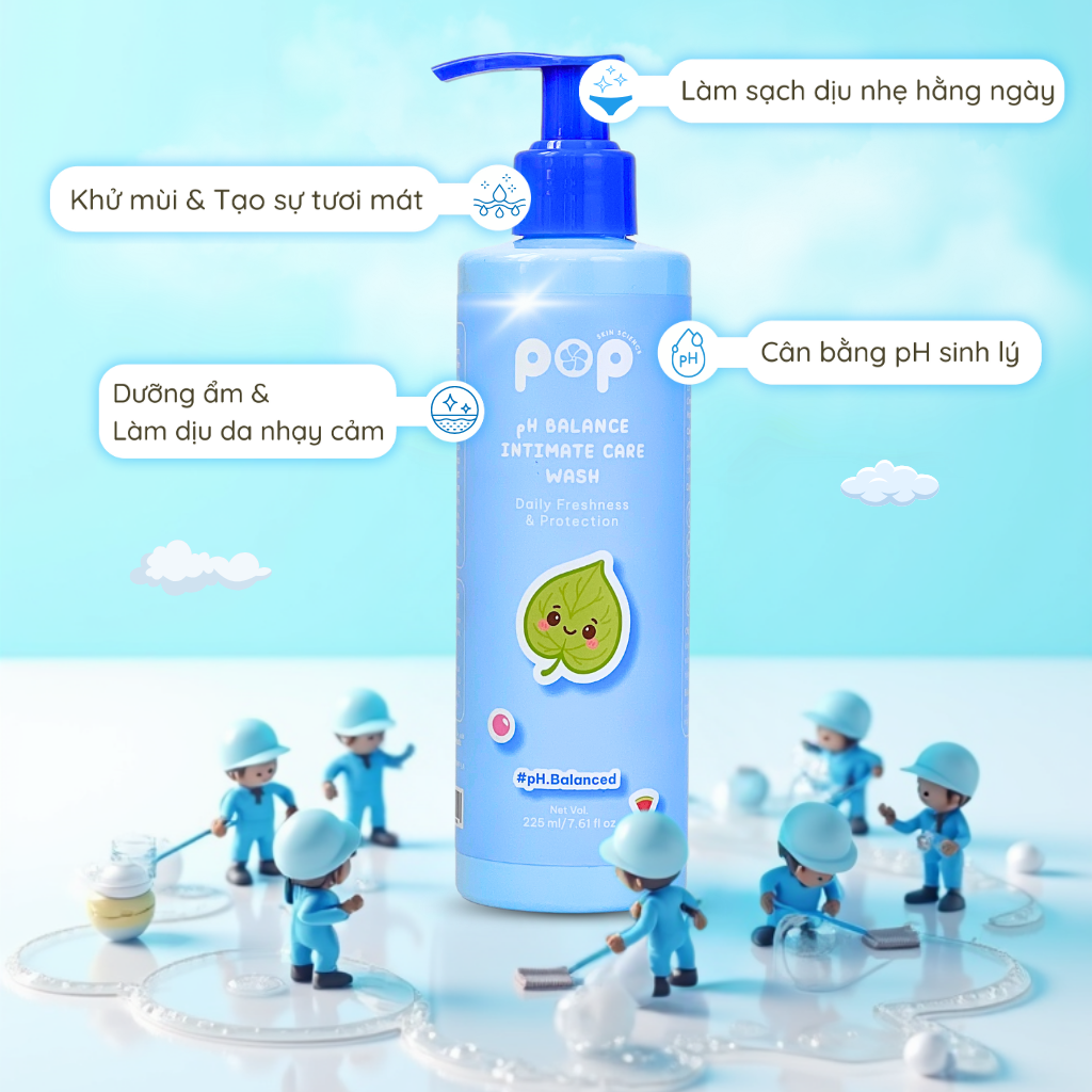 Nếu bạn đang tìm kiếm một sản phẩm làm sạch vùng kín mà không gây khô rát hay mất cân bằng pH, mang lại cảm giác thoải mái và tươi mát suốt cả ngày, thì dung dịch vệ sinh của Pop chính là lựa chọn lý tưởng dành cho những bạn gái yêu thích sự mềm dịu, sạch sẽ và hương thơm tự nhiên – đặc biệt trong những ngày nắng nóng hoặc "đèn đỏ". Với thành phần axit lactic kết hợp chiết xuất thực vật thiên nhiên, sản phẩm giúp làm sạch hiệu quả mà vẫn dịu nhẹ, phù hợp với môi trường sinh lý của làn da nhạy cảm. Dung dịch có độ pH lý tưởng, hỗ trợ duy trì hệ lợi khuẩn tự nhiên – mang lại cho bạn sự tự tin và thoải mái mỗi ngày.