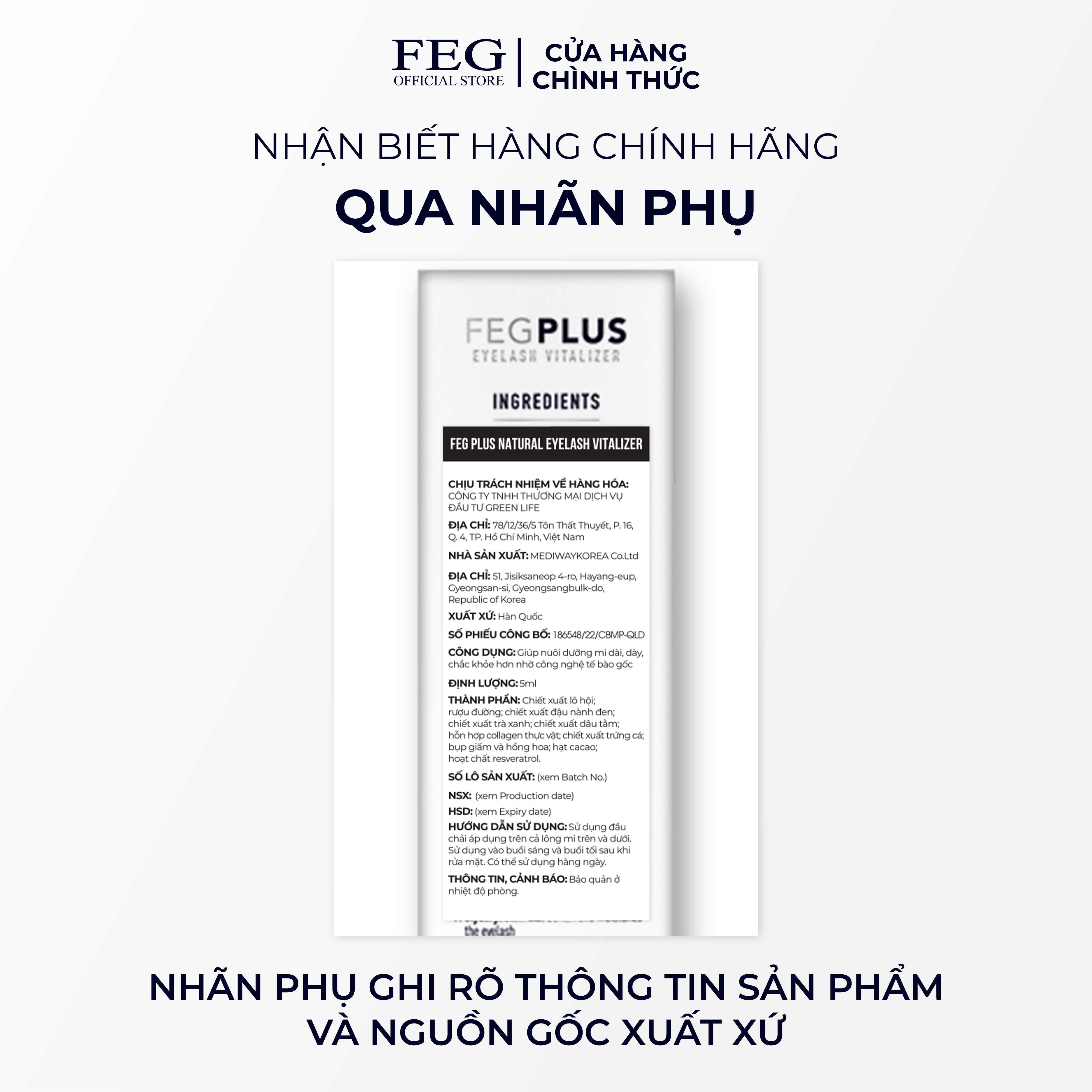 - Địa chỉ website in trên hộp: fegpluseyelash.com