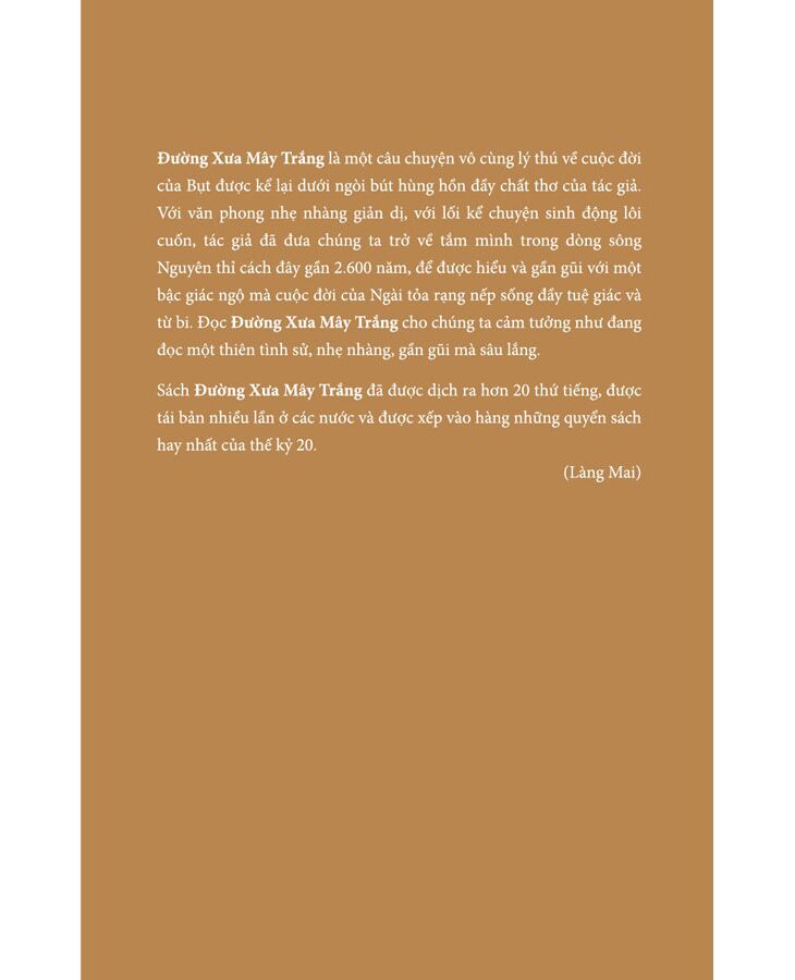 Sách Đường Xưa Mây Trắng - Theo Gót Chân Bụt đã được dịch ra hơn 20 thứ tiếng, được tái bản nhiều lần ở các nước và được xếp vào hàng những quyển sách hay nhất của thế kỷ 20.