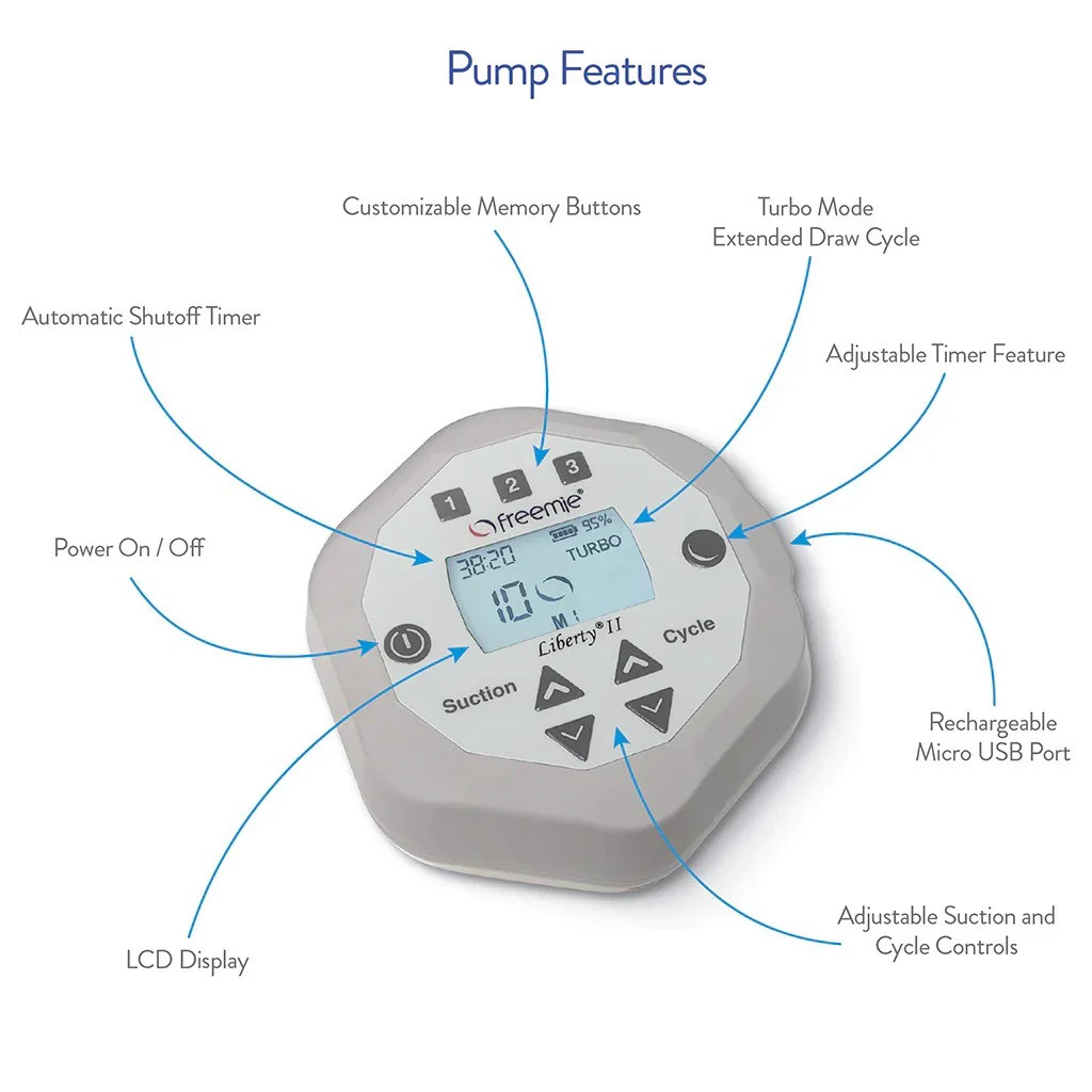 Nhằm đem lại một máy hút sữa nhỏ gọn, tiện lợi, lại có sức mạnh của dòng Hospital Grade. Freemie cố gắng tích hợp nhiều nhất có thể từ những tính năng đóng vai trò thiết yếu đến tính năng mang nhiệm vụ hỗ trợ và nâng cao chất lượng trải nghiệm hút sữa của mẹ, và Máy hút sữa Rảnh Tay Di động Freemie Liberty II là một trong ba thành quả cao cấp nhất cho đến lúc này Dao Health.
