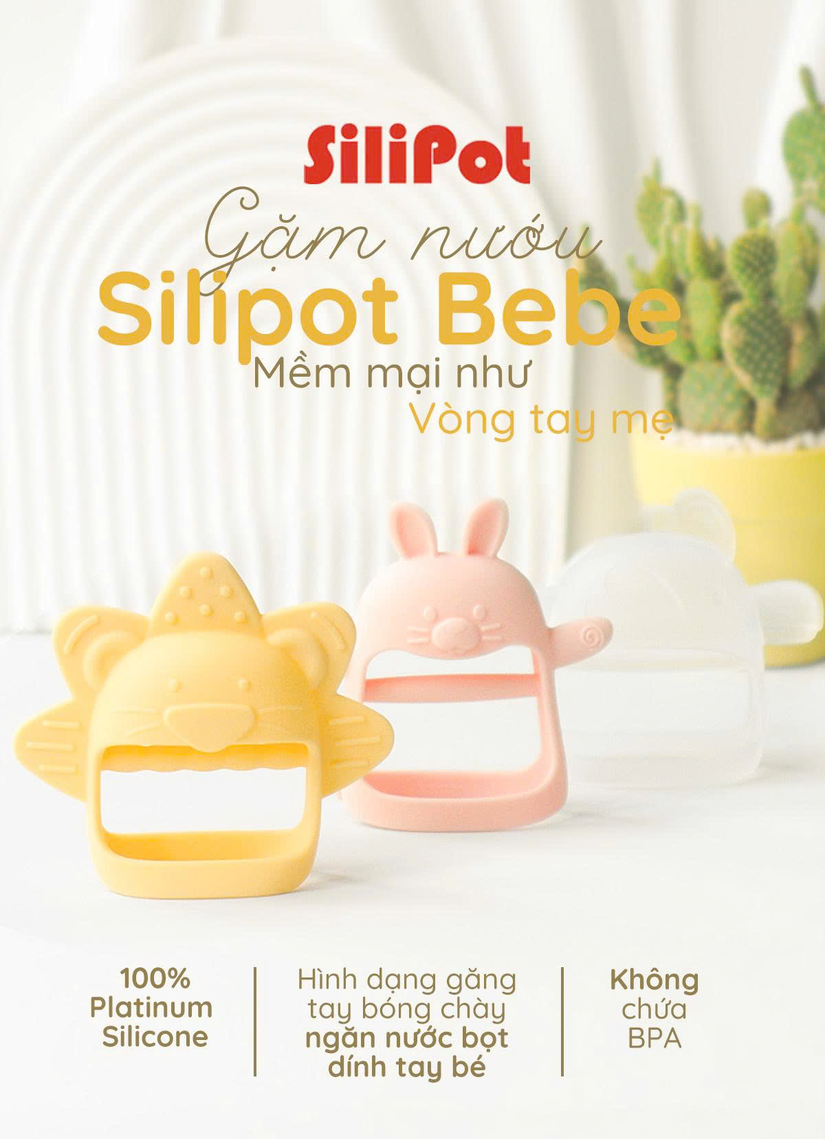 Gặm nướu cho bé từ sơ sinh SILIPOT BEBE mềm, chất liệu platinum silicone, an toàn cho bé, không BPA, chịu nhiệt 250 độ Thông Tin Sản Phẩm:- Chất liệu: 100% Silicone y tế cao cấp (Platinum Silicon...