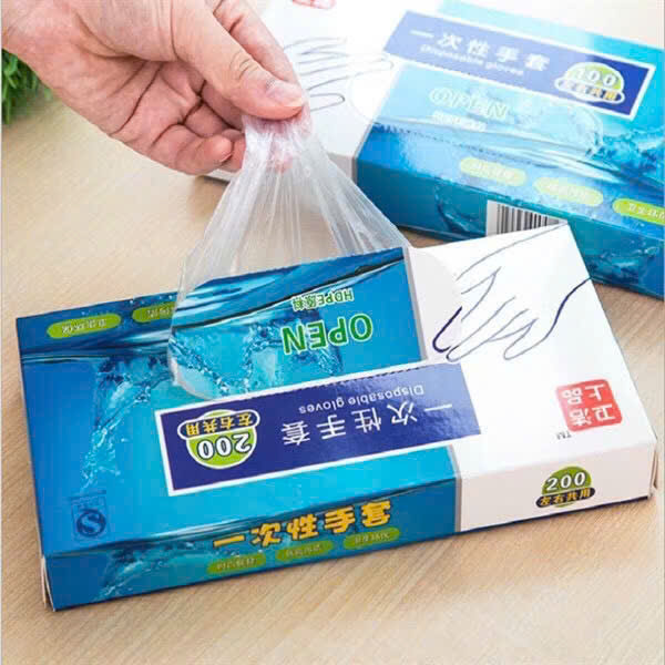 Găng tay chế biến thực phẩm hộp 200 cái, găng tay nilong nấu ăn sử dụng 1 lần, bao tay thực phẩm