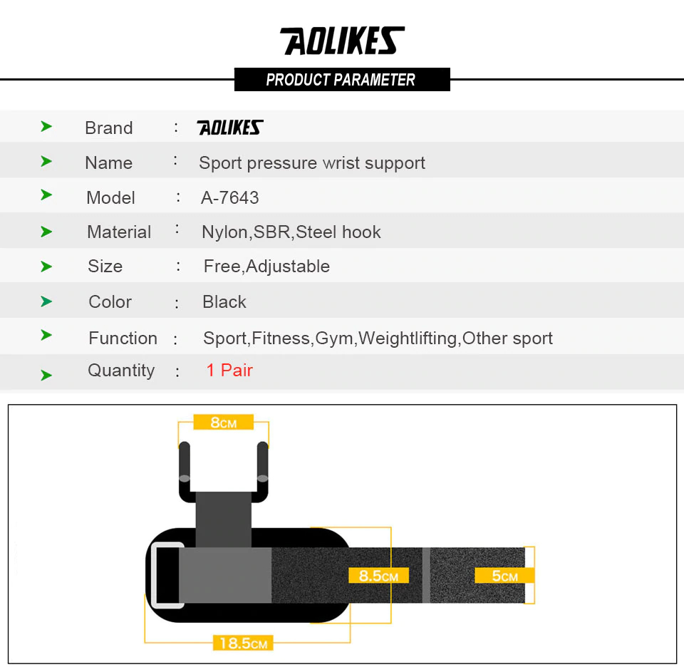 Găng tay tập gym hở mu AOLIKES A-7639 Sport Wrist Bands AOLIKES 1 Pair Sport Fitness Wrist bands Pull Up Grip Belt Non-slip Palm Protector Gym Wristbands for Barbell dumbbell Training Găng tay tập gym