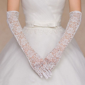 Găng tay Cô dâu và Dạ hội, đi tiệc, sự kiện MS: 42422 Chất liệu: cotton. Kiểu dáng: bao kín ngón, ôm tay. Đặc điểm: dáng dài, co giãn nhẹ. Hoạ tiết: ren hoa. Độ