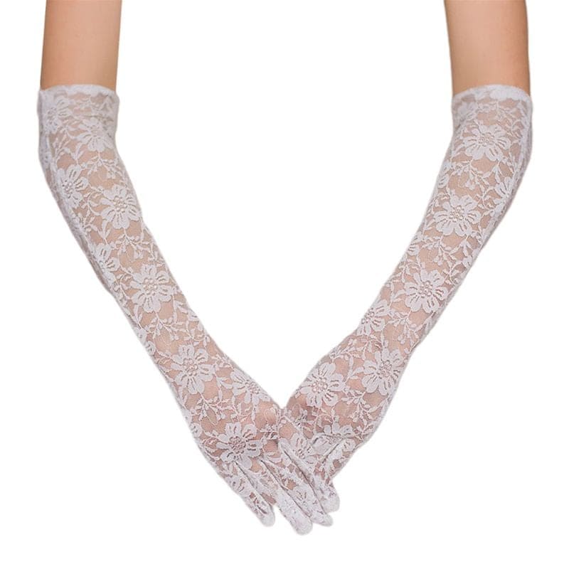 Găng tay Cô dâu và Dạ hội, đi tiệc, sự kiện MS: 42222 Chất liệu: cotton. Kiểu dáng: bao kín ngón, ôm tay. Đặc điểm: dáng dài, co giãn nhẹ. Hoạ tiết: ren hoa. Độ