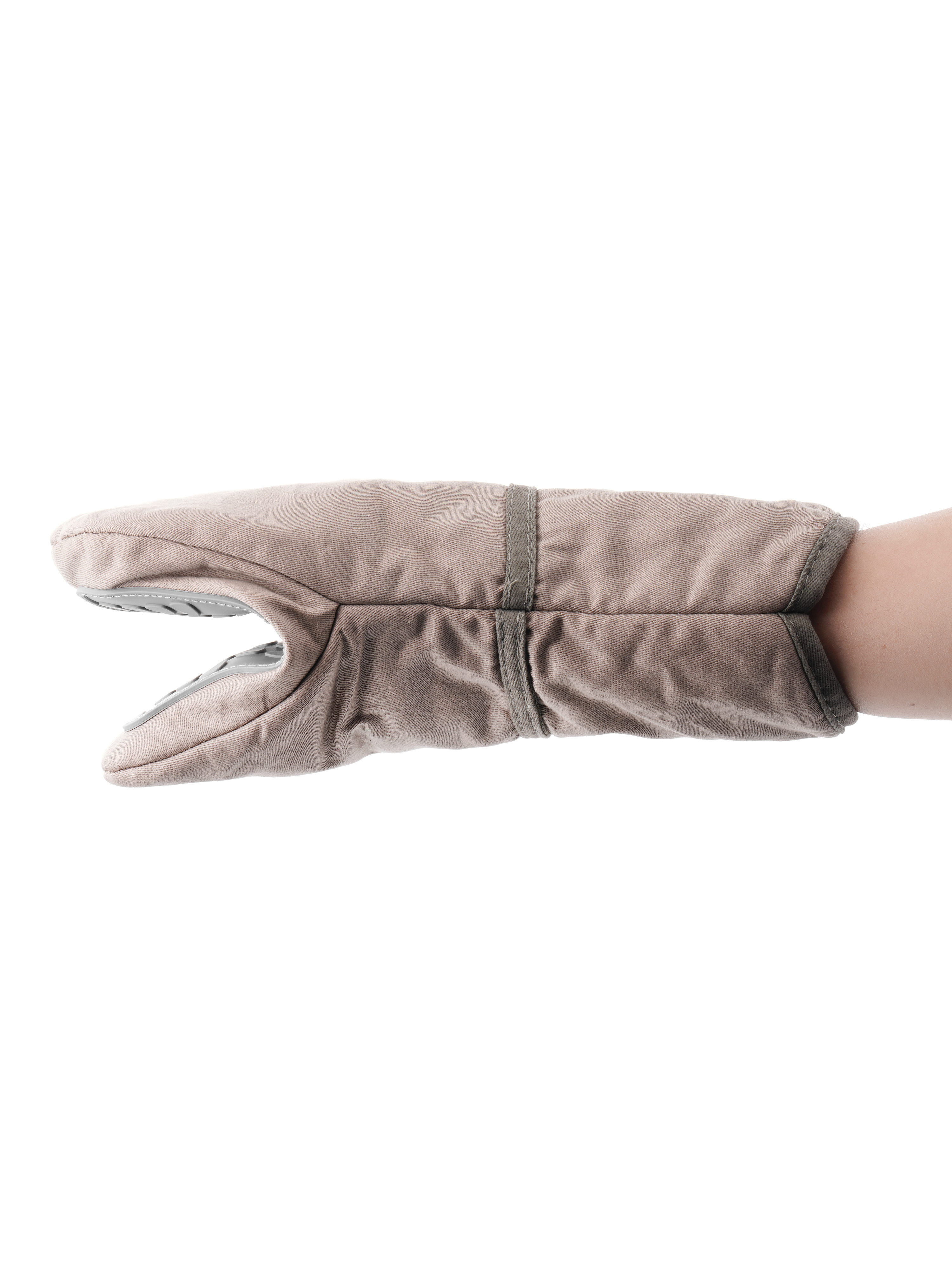 Găng tay silicone nhấc nồi kích thước : 195x125x20 màu sắc : nâu + xám chất liệu ; Silicone , Textile