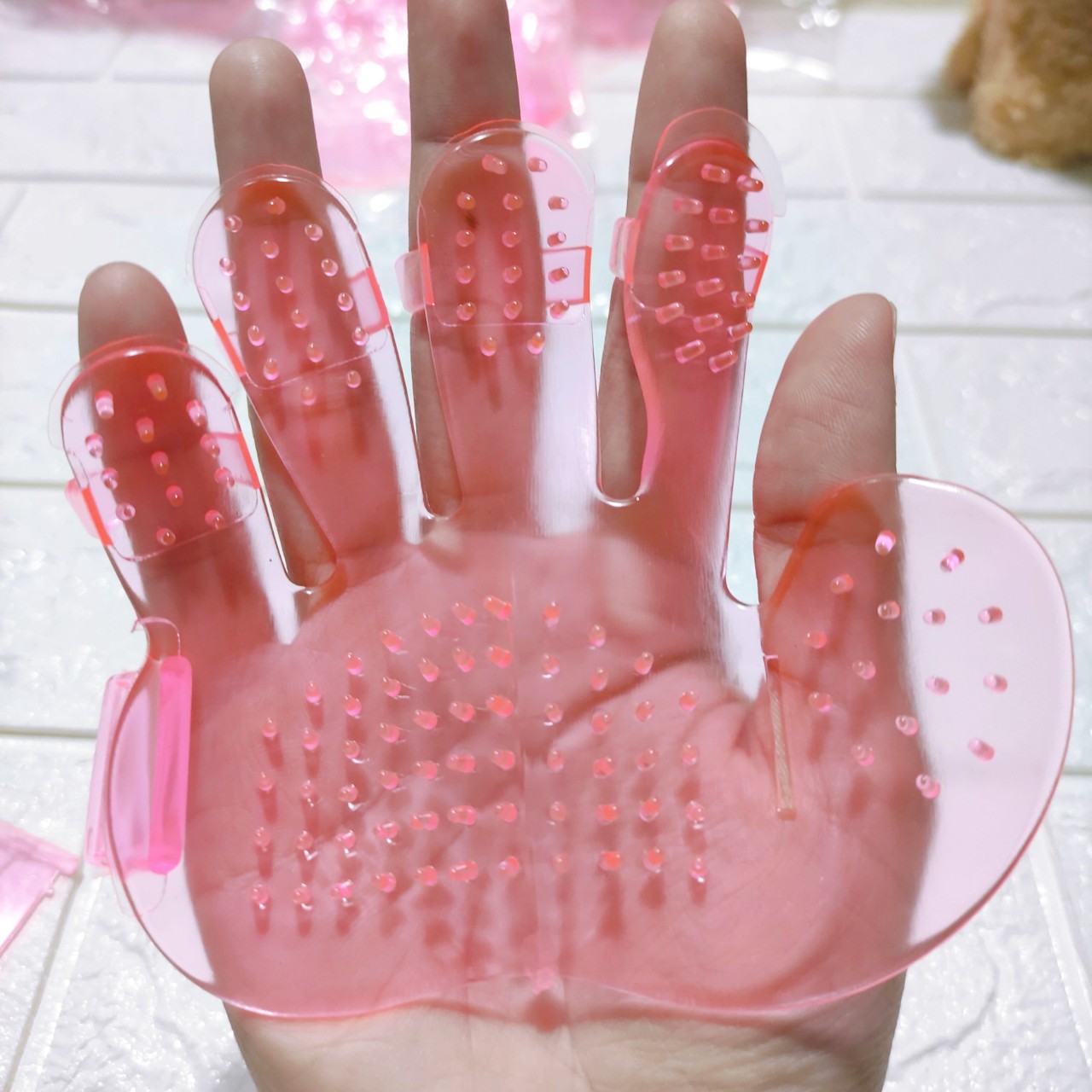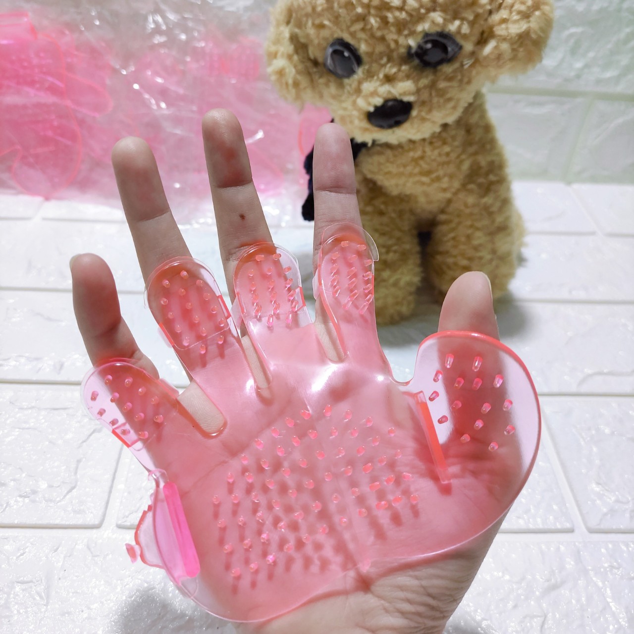 MÔ TẢ SẢN PHẨM - Găng tay tắm cho chó mèo là sản phẩm nhựa dẻo trong suốt có hình bàn tay, được thiết kế với các đầu nhựa mềm, dẻo không làm đau thú