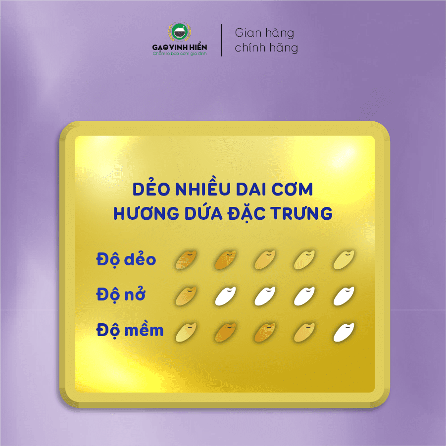 Vị dẻo, vị thơm đặc trưng sẽ kích thích vị giác giúp thưởng thức các món ăn tuyệt vời hơn.
