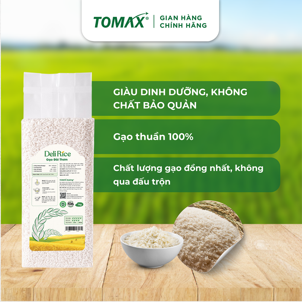 COMBO 3 TÚI 1KG GẠO ĐÀI THƠM Tomax - TƠI XỐP, DẺO THƠM, THƠM DỊU - TOMAX Gạo hữu cơ Đài Thơm Tomax 100% không có chất bảo quản, không có chất chống mọt, chống