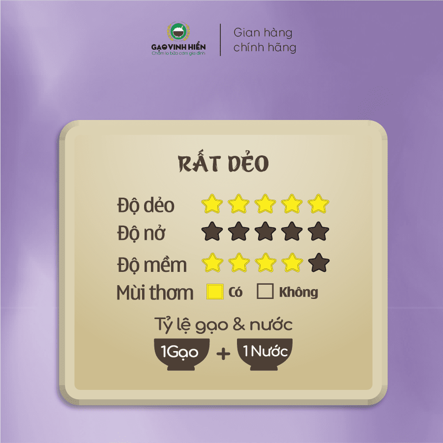 - Cơm nấu lên rất dẻo, có độ dai, hạt cơm mềm, vị ngọt đậm đà, mùi thơm tự nhiên và nhiều dinh dưỡng.