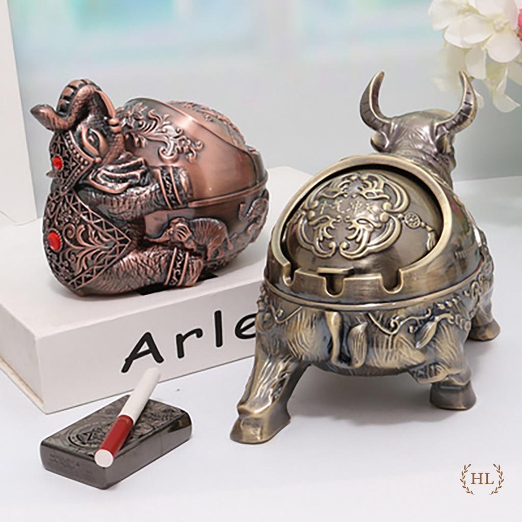 ên sản phẩm : Gạt tàn Trâu đồng Kích thước sản phẩm: 10cm×13cm×21cm Chất liệu: Hợp kim kẽm Trọng lượng sản phẩm: 500 GRAM Màu sắc: Đồng Giả Cổ và Trắng Vàng Tính năng: -