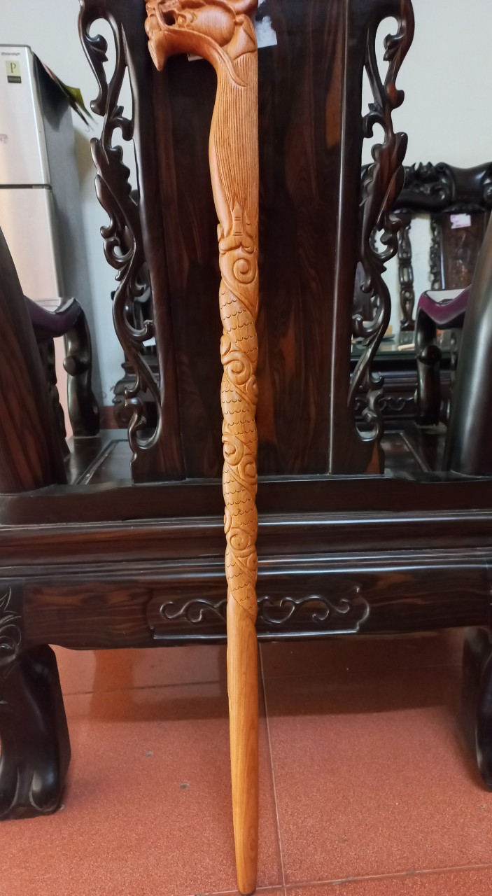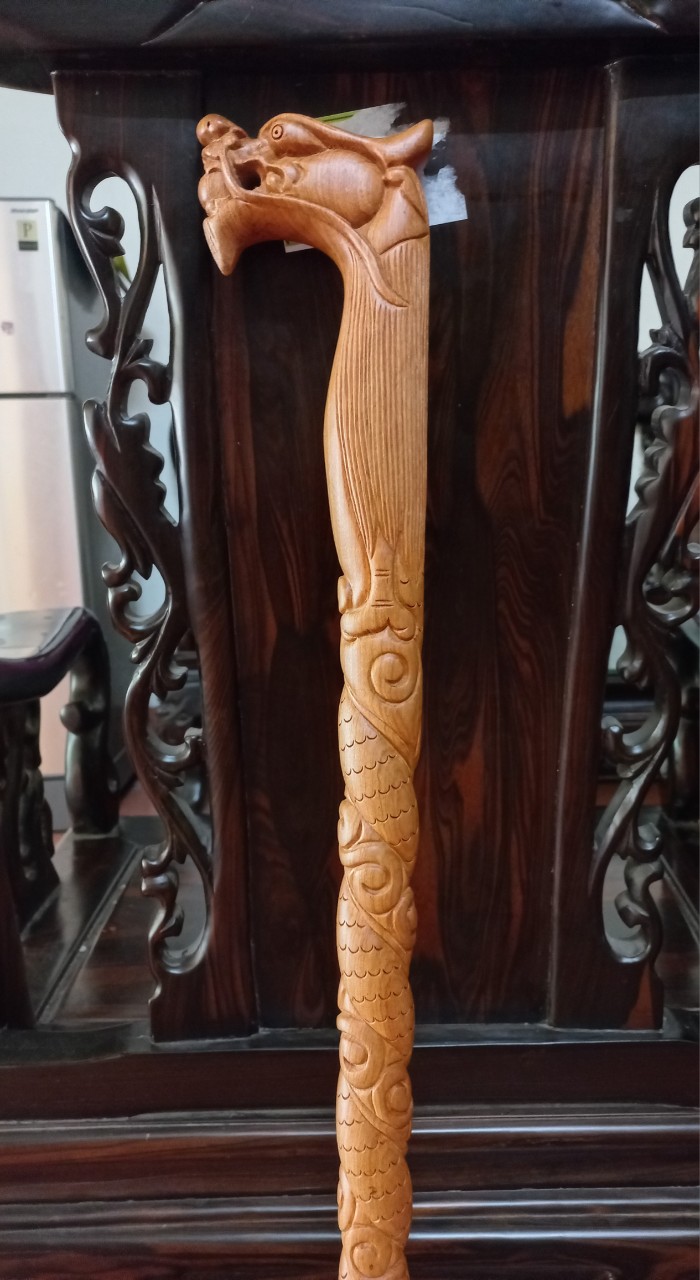 Đặc điểm nổi bật Gậy được khắc rồng cuốn từ đầu xuống chân tỉ mỉ ,tinh xảo kỳ công .Đi hầu hết tất cả mọi chi tiết góc ngách nội dung hoa văn của gậy