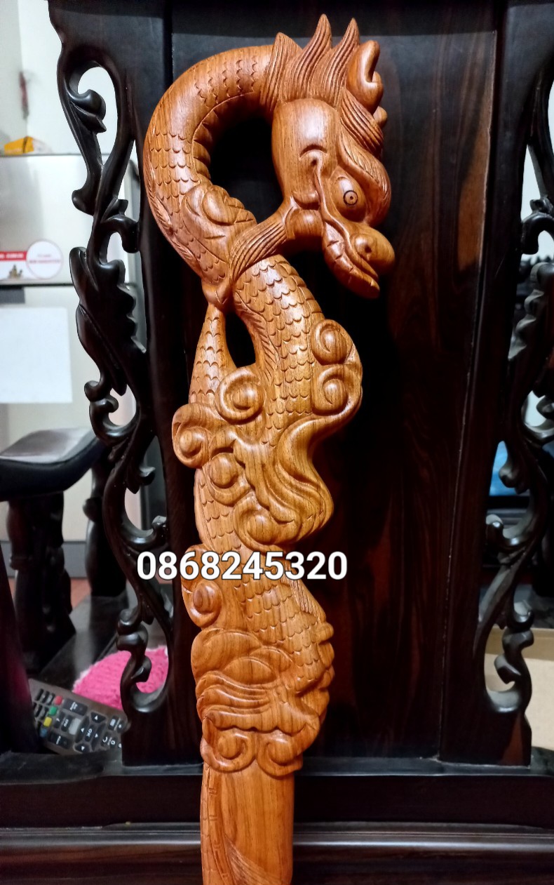 Đặc điểm nổi bật Gậy được khắc rồng cuốn từ đầu xuống chân tỉ mỉ ,tinh xảo kỳ công .Đi hầu hết tất cả mọi chi tiết góc ngách nội dung hoa văn của gậy