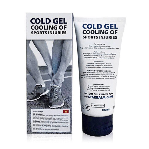 THÔNG TIN THƯƠNG HIỆU: STARBALM Sport Care Sản phẩm STARBALM hổ trợ thể thao được chiết xuất từ thảo mộc thiên nhiên 100%, được đặc biệt phát triển hỗ trợ tích cực những người yêu thích thể thao. Một công cụ hiệu quả ngăn ngừa thương tích để bạn có thể yên tâm luyện tập thể thao rèn luyện sức khỏe hoặc đạt đến giới hạn cơ thể của bạn khi thi đấu chuyên nghiệp. STARBALM sử dụng khái niệm TRƯỚC - TRONG - SAU khi chơi Thể Thao, nhằm làm rõ sản phẩm nào được sử dụng cho mục đích nào. Đối với mỗi sản phẩm, chúng tôi đã đề cập đến khái niệm này trên các gói sản phẩm. Sản phẩm MÀU ĐỎ là để hỗ trợ việc làm nóng cơ thể TRƯỚC khi chơi thể thao hoặc SAU khi chơi thể thao để được massage thư giãn. Sản phẩm MÀU XANH chủ yếu được sử dụng TRONG khi và SAU khi chơi thể thao, dùng để chống sưng tấy, bầm tím hoặc trong một số trường hợp bị thương tích nhẹ khác. ️️️️️ ️ Sản phẩm: GEL LÀM LẠNH STARBALM (COLD GEL) ️ Thành phần: PVM/MA Decadiene Crosspolymer, Triethanolamine, Menthol, Eucalyptus Oil, Cassia Oil, Tea Tree Oil, Menthyl Acetate, Polyethylene Glycol, Acid Blue, Azone, Ethyl Alcohol, Purified Water ️ Hãng sản xuất: Novum Pharma BV ️ Xuất xứ: Hà Lan ️ Dung tích: 100 ml ️ Màu: Xanh dương CÔNG DỤNG: Gel lạnh là sản phẩm hoàn hảo hỗ trợ khi bị thương tích và sưng. Hiệu ứng của gel ngay lập tức đi vào phần cơ cốt lõi. Gel được hấp thụ nhanh chóng vì công thức dang lỏng của nó. Cũng có thể sử dụng gel lạnh STARBALM khi gặp chứng viêm hoặc để thư dãn các cơ bị làm việc quá sức. Nó cũng giúp da phục hồi từ vết thâm tím. ️ ĐỐI TƯỢNG SỬ DỤNG: Thích hợp cho người lớn và trẻ em từ 6 tuổi trở lên. CÁCH DÙNG: Sử dụng hỗ trợ trong trường hợp bị đau, mỏi cơ TRONG và SAU khi chơi Thoa một lượng gel lạnh vừa phải trải đều lên vị trí vùng chấn thương. Cảm giác mát lạnh có thể cảm nhận ngay tức thì. Tác dụng nóng lên sau khi lạnh giúp lưu thông máu tốt nhất Có thể sử dụng nhiều lần trong ngày Không dùng cho vết thương hở CÁCH BẢO QUẢN: ️ Bảo quản trong điều kiện mát và khô ️ Giữ sản phẩm ra khỏi ánh nắng mặt trời và nhiệt độ trên 50 độ C ️ Để xa tầm tay trẻ em ƯU ĐIỂM: ️ Hiệu ứng lạnh ngay giúp khoanh vùng vết thương. Hỗ trợ khi bị chấn thương, trật gân, sưng, bầm tím, viêm, đồng thời giúp cơ thể thư giãn hiệu quả ️ Gel thấm NHANH và SÂU vào các bó cơ, hỗ trợ phục hồi nhanh chấn thương, giúp bạn có thể tối đa hóa việc tập luyện đến giới hạn tối đa của cơ thể dễ dàng ️ Thành phần KHÔNG CHỨA LONG NÃO (Camphor Free) ️ Sản phẩm chất lượng với giá thành hợp lý cho nhiều lần sử dụng ️ Được sản xuất theo công nghệ hiện đại và đạt tiêu chuẩn y tế khắt khe tại châu Âu, tuyệt đối an toàn cho sức khỏe người dùng ️ Dễ dàng lau chùi và rửa với nước