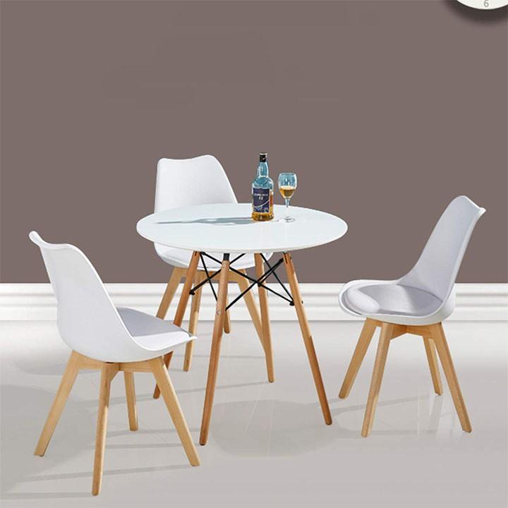 Bộ bàn ăn cafe tròn 4 ghế eames chân gỗ tựa lưng cao giá rẻ - Lan Anh Inc - Nội thất Lan Anh