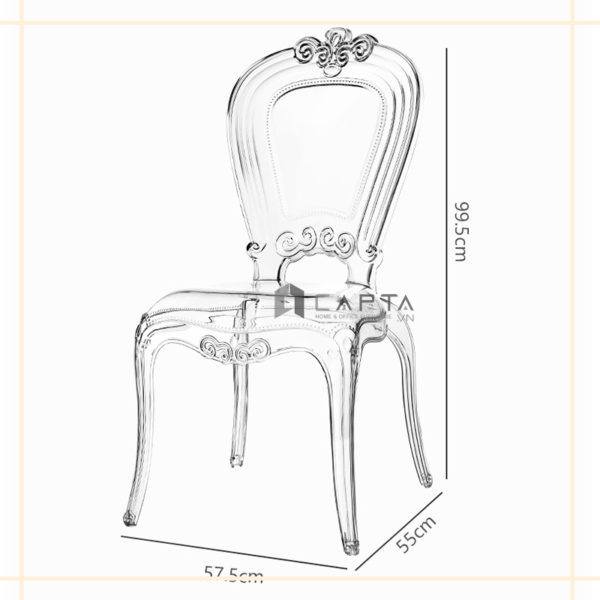 Ghế cafe nhựa PC trong suốt cao cấp cho sân vườn, ngoài trời Ghế trang điểm tựa lưng Ghost 2A-PC