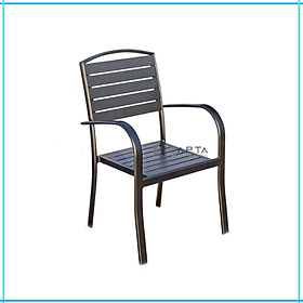 Ghế ngoài trời xếp chồng Ghế ngồi ban công lưng gỗ nhựa Polywood (nhựa giả gỗ) khung nhôm có tay tựa CC2028-A - Outdoor dining chair