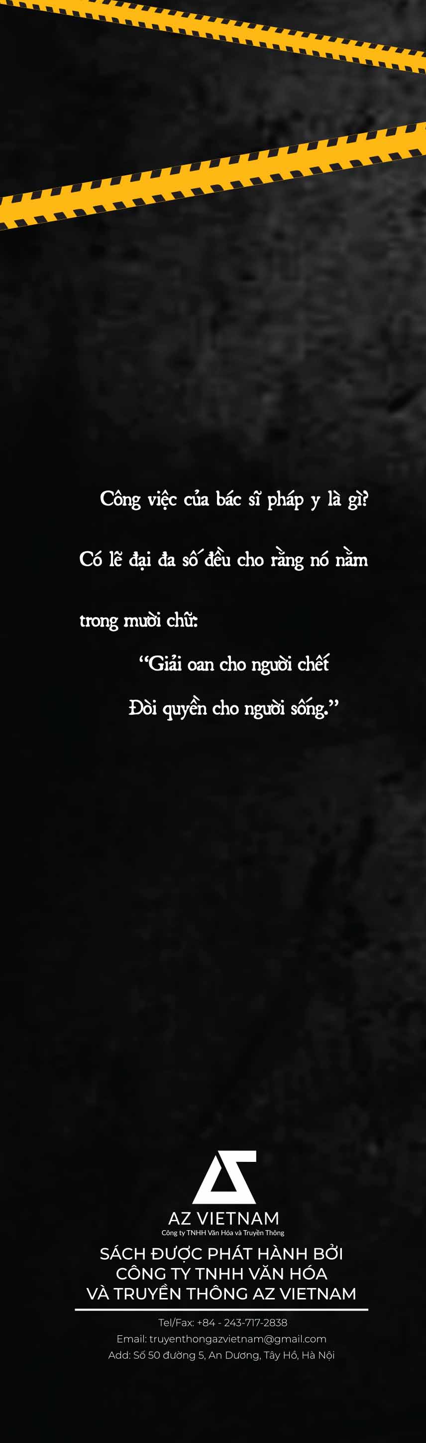 Mỗi vụ án đều là một ẩn số, hiện trường vụ án bao gồm cả xác chết chính là chiếc chìa khóa để truy tìm hung thủ ngay cả khi nó không còn nguyên vẹn. Vậy làm cách để các bác sĩ pháp y có thể xác định thương tật, các dấu hiệu cơ thể bị xâm hại? Cuốn sách này sẽ trình bày những kiến thức chuyên môn và quy trình xử lý vụ án, từ hiện trường vụ án đến đài giải phẫu, xét nghiệm nội tạng, phân tích chất độc… từng bước tìm ra bí mật ẩn giấu sau mỗi tử thi, phơi bày những manh mối liên quan đến tội ác con người và lỗ hổng của xã hội.