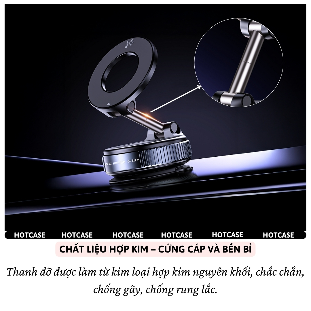✨Giá đỡ điện thoại từ tính Magnetic nam châm hút chân không xoay 360 độ cho xe hơi ô tô, bàn làm việc, phòng tắm hiệu Hotcase Airlock Pro Cho iPhone cho Samsung điện thoại - Hàng nhập khẩu