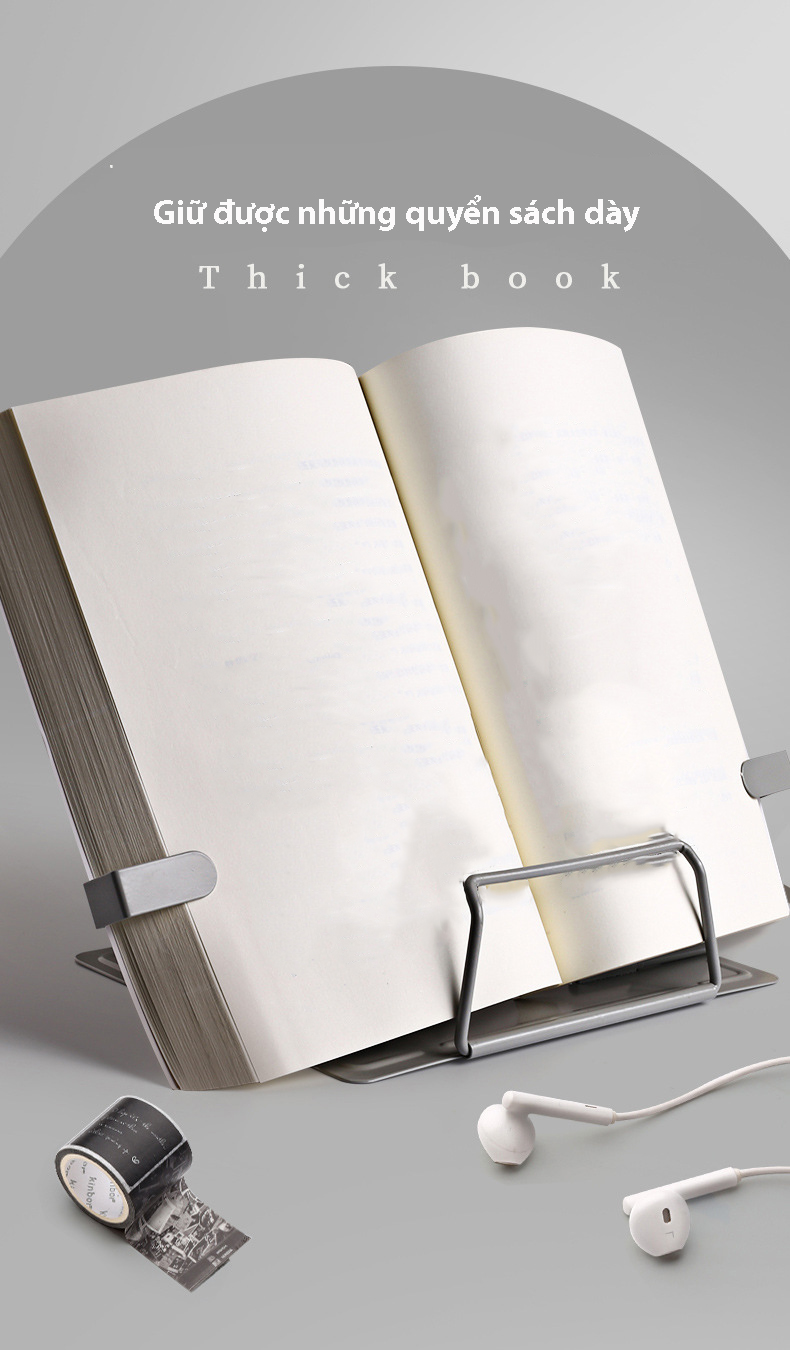 Giá đỡ kẹp sách kim loại K30 chống cận thị, giá đựng điện thoại ipad, decor bàn học - VPP Tuệ Minh