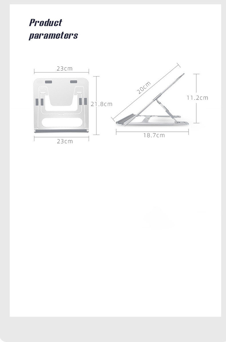 1. Material: aluminum alloy+silicone 2.Size: ≈L150×W79×H51(mm) 3.Weight: ≈176g 4.Compatible size: laptops up to 15.6-inch 5.Adjustable width: 12-26mm