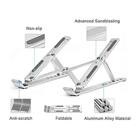 Stand Nhôm Tản Nhiệt Dành Cho Macbook, Laptop Có Thể Gấp Gọn Và Điều Chỉnh 6 Nấc Độ Cao Lucas - Đế máy tính xách tay: Hợp kim nhôm; điều chỉnh; có thể gập lại