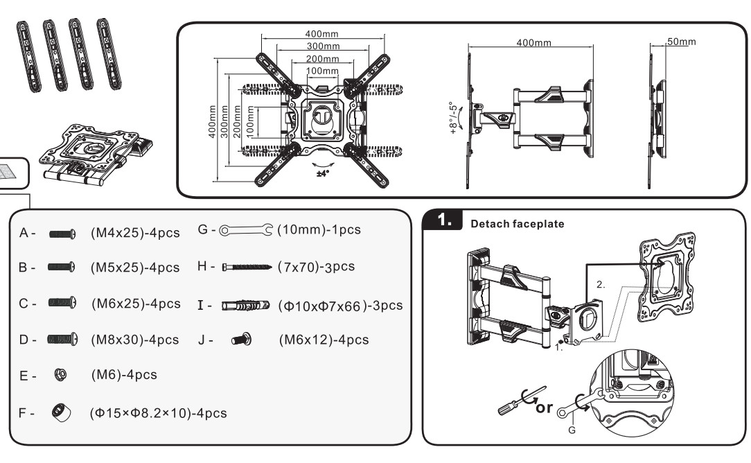 E85 [Ergotek] / P4 [NB] - Giá treo Tivi Xoay đa năng - Hướng dẫn lắp đặt chi tiết