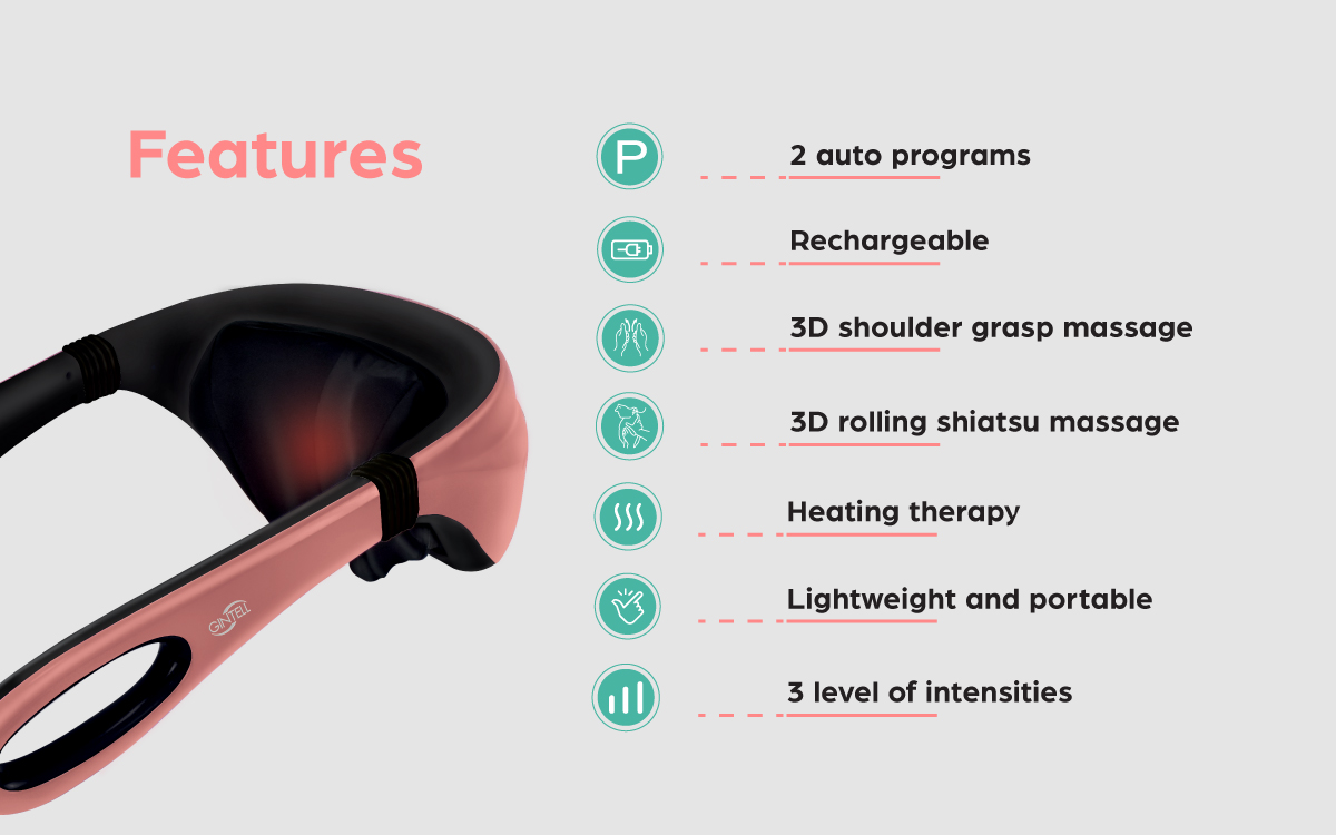 Massage nhẹ nhàng, thư giãn các vùng cơ chịu nhiều áp lực Thiết kế di động, lý tưởng để mang đi du lịch Có thể điều chỉnh tiện lợi với bảng điều khiển tích hợp