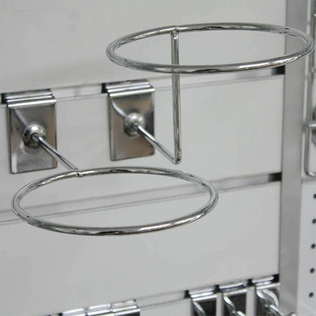 Đặc điểm sản phẩm: – Đai tròn đường kính 14cm phù hợp cho hầu hết các loại bóng – Vách lưng phụ kiện Slatwall được thiết kế bản lớn giúp tăng chịu lực sản phẩm – Các góc cạnh được gia công kỹ càng không bị sắc cạnh. Xi mạ Niken sáng bóng.