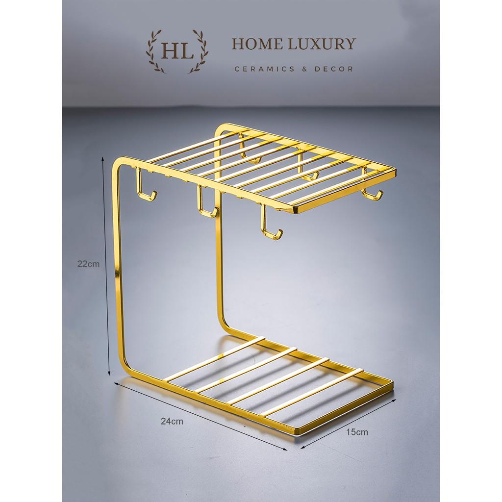 Giá úp ly, kệ úp cốc, chất liệu hợp kim mạ vàng sang trọng, Kèm khay hứng nước